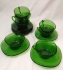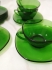 Klassiska gröna Vereco kaffekoppar med fat, goda att dricka ur.