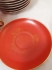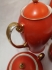 Kaffeservis KPM i orangeröd färg med guldkant.
