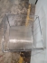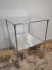 Ett hörn saknas för glasskivan i ett hörn på nedre hyllplanet . Lätt rost på benen.