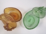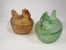 2st ägghönor i glas . En grön, en bärnstensfärgad