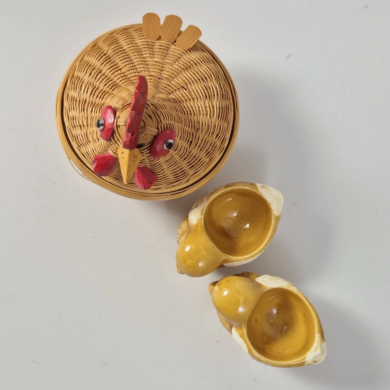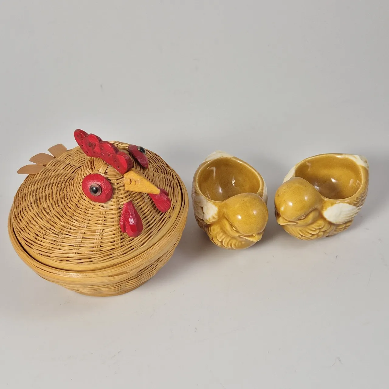 2st äggkoppar kycklingar H.5.5cm . En gömm-höna.