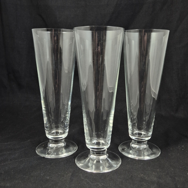 3st ölglas på fot i tunnt glas. H. 22.5cm.