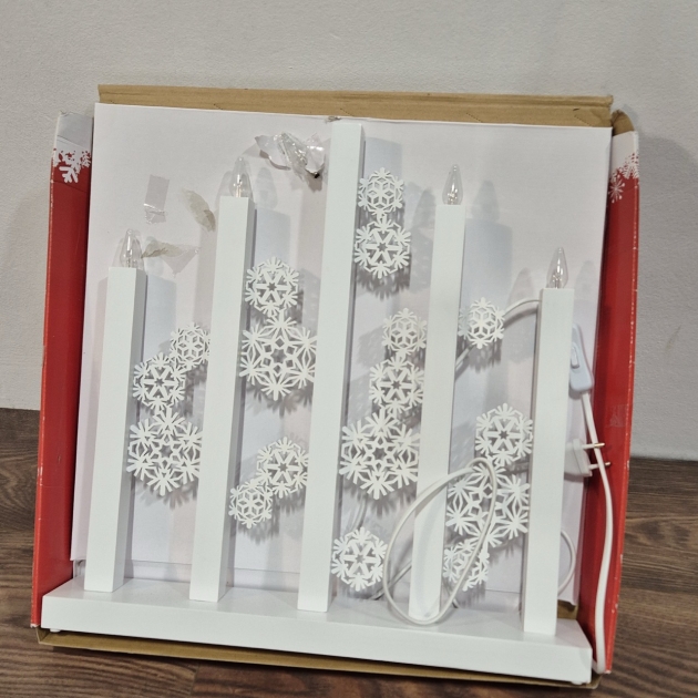 Adventsljusstake med snöflingor . Ej testad. H.48cm