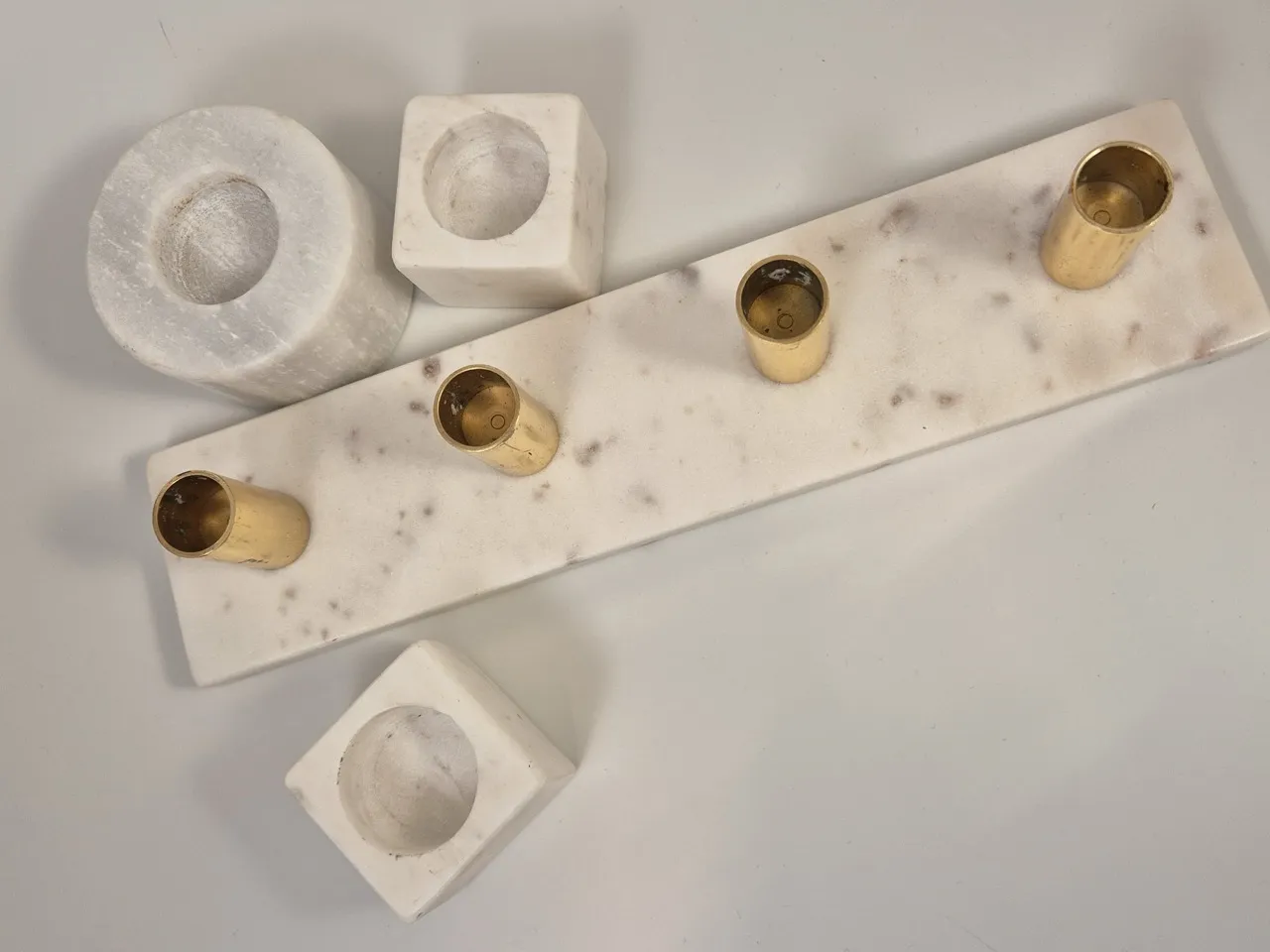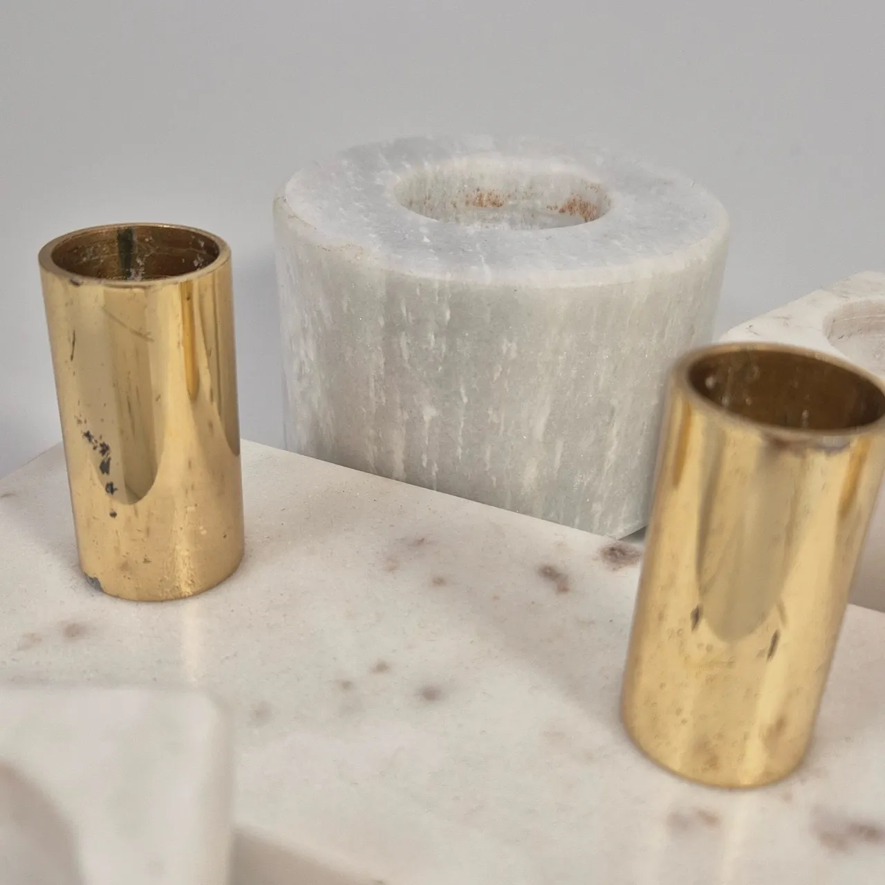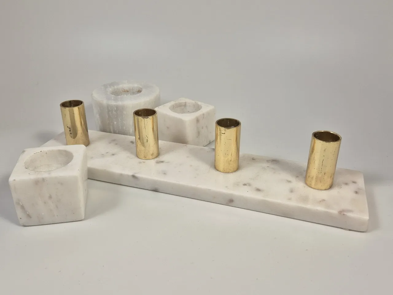 Adventljusstake marmor. Skrapmärken på ljushållarna