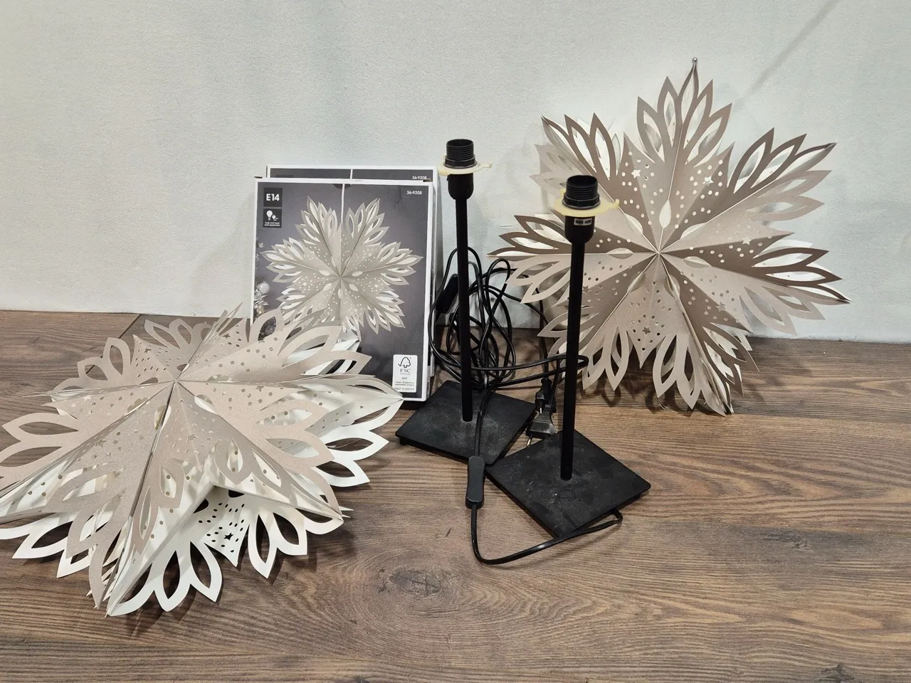 2st adventsstjärnor D.46cm . 2 st lampfötter från Ikea.