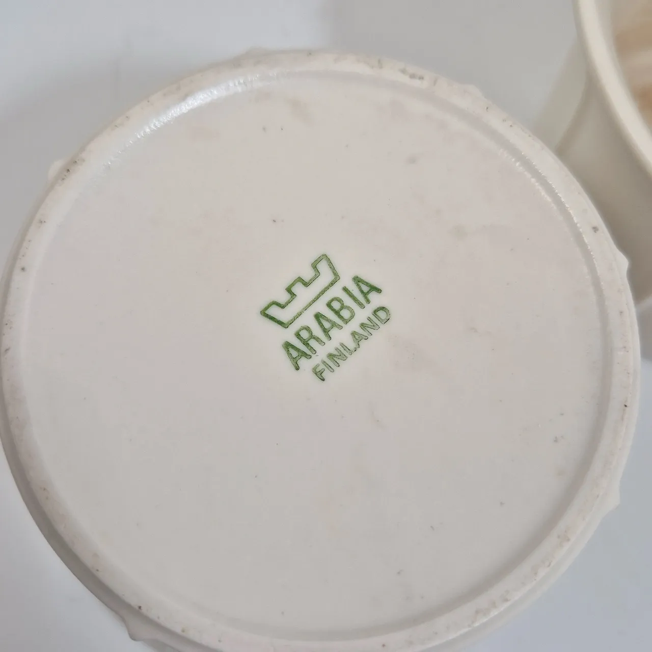 Arabia 2st krukor, fläckar finns. D.12cm