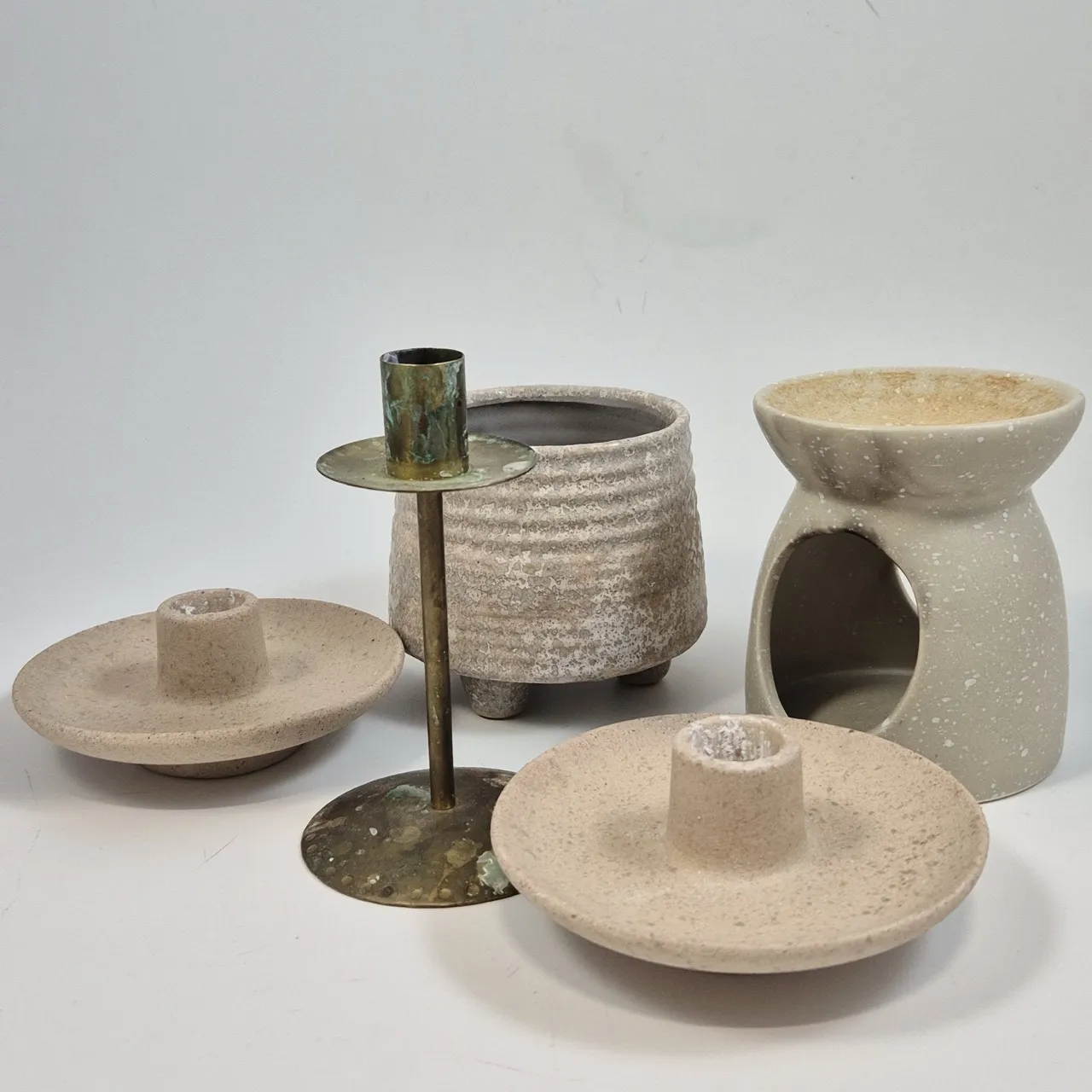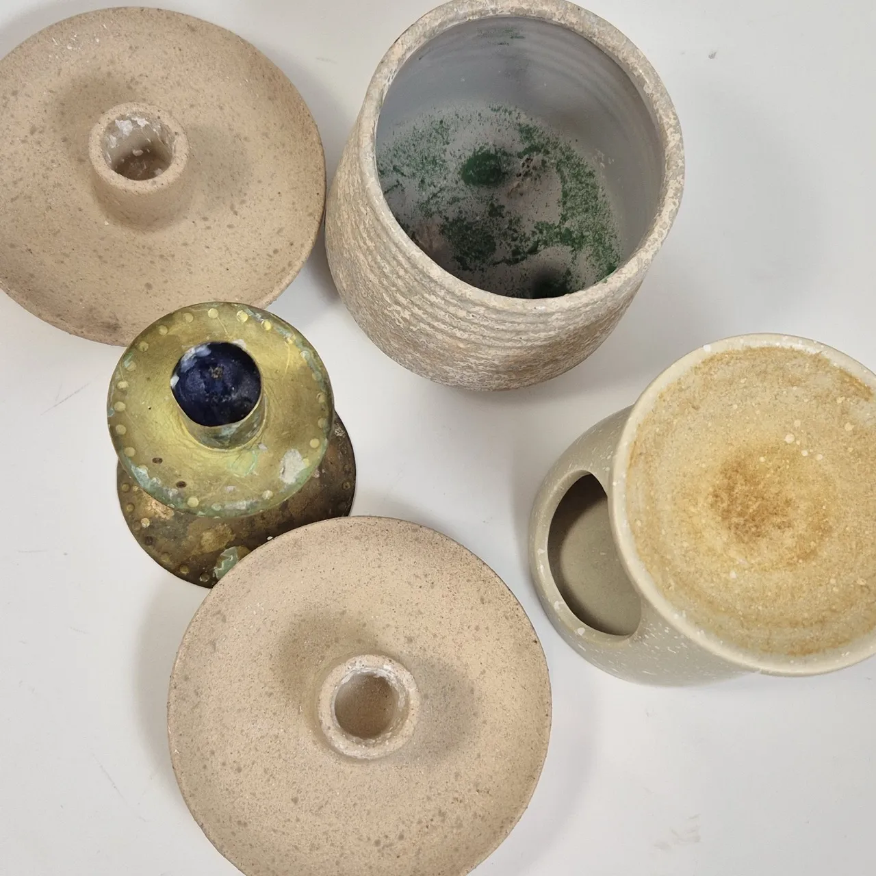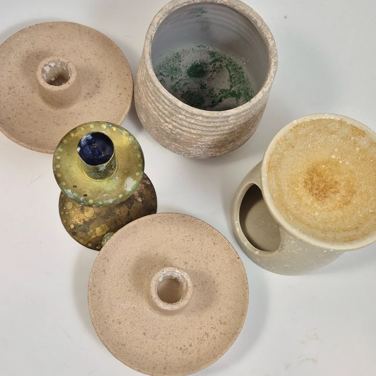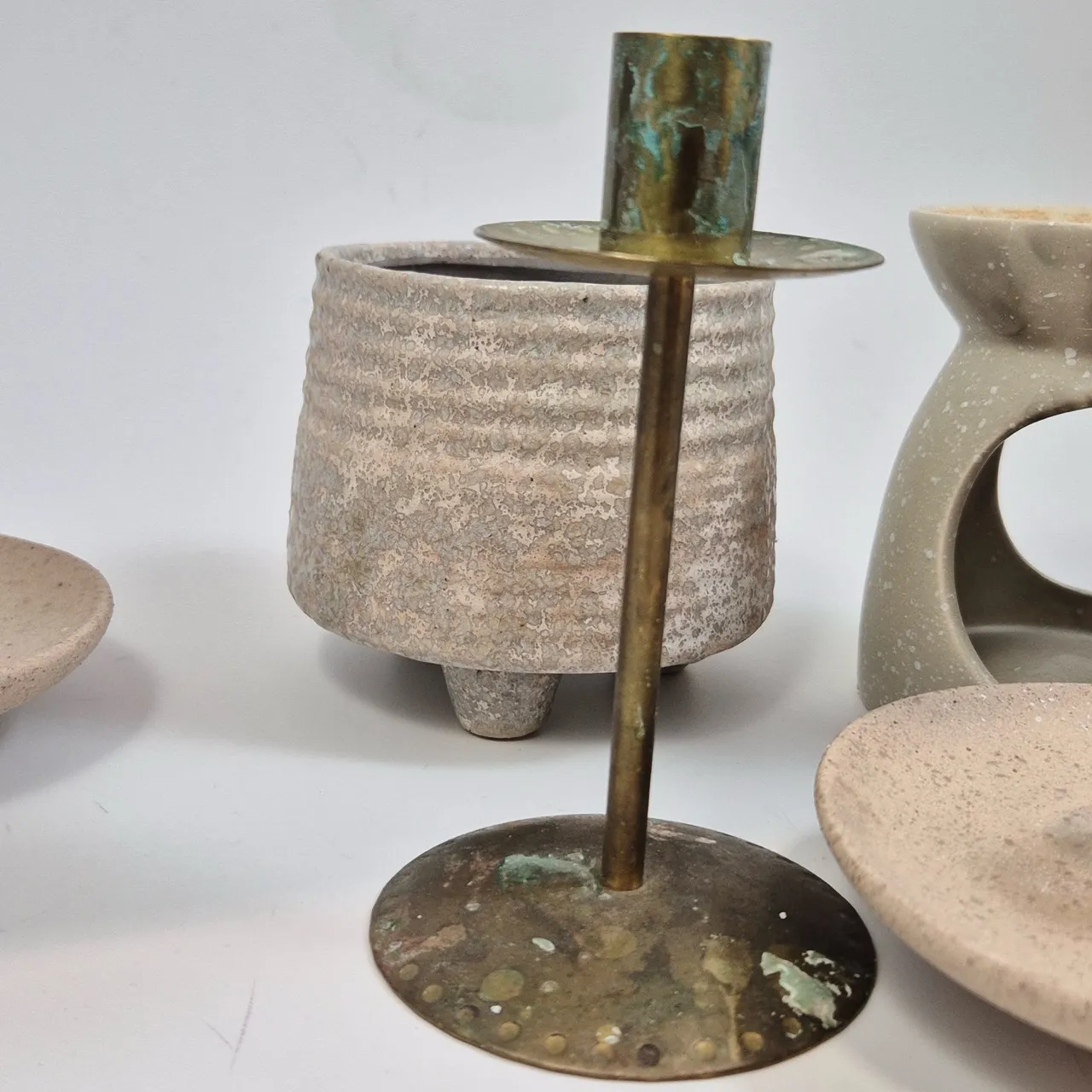 Aromalampa missfärgningar från olja, 2st ljusstakar, 1st kruka med tassar H.10cm , 1st ljusstake
