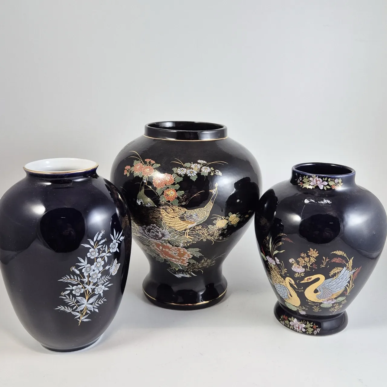 2st mörkblå vaser, 1st svart vas H.21.5cm