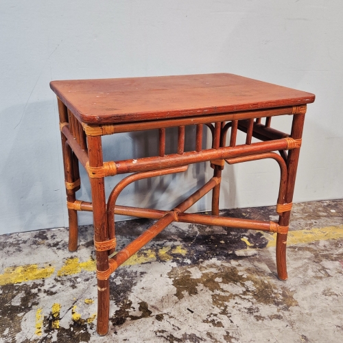 Bord i bambu med träskiva. H.61cm 64x47cm
