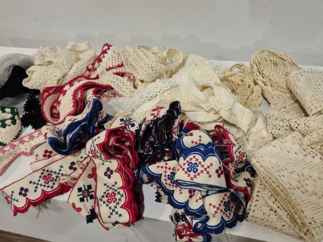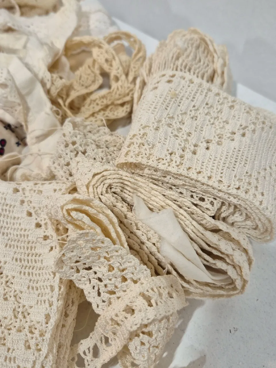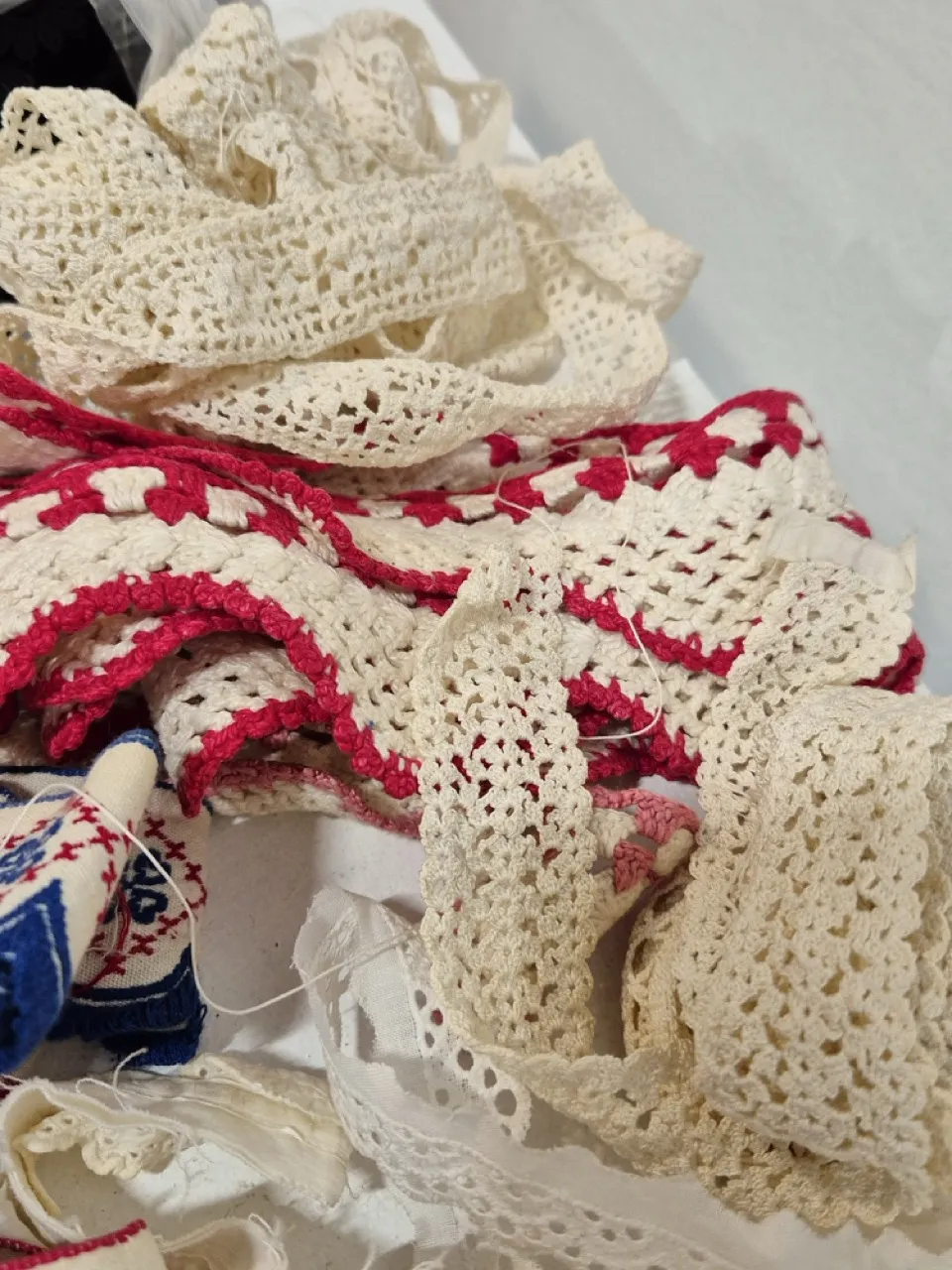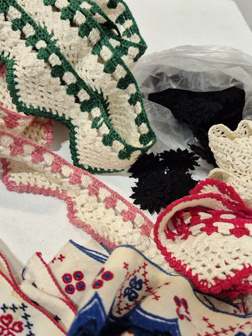 Band i olika utformningar , spets, virkat, osv.