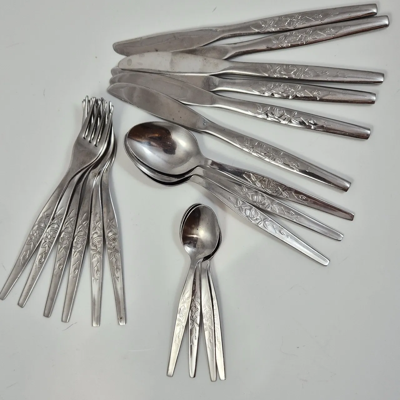 6st gafflar, 6st knivar, 4 teskedar, 3st matskedar