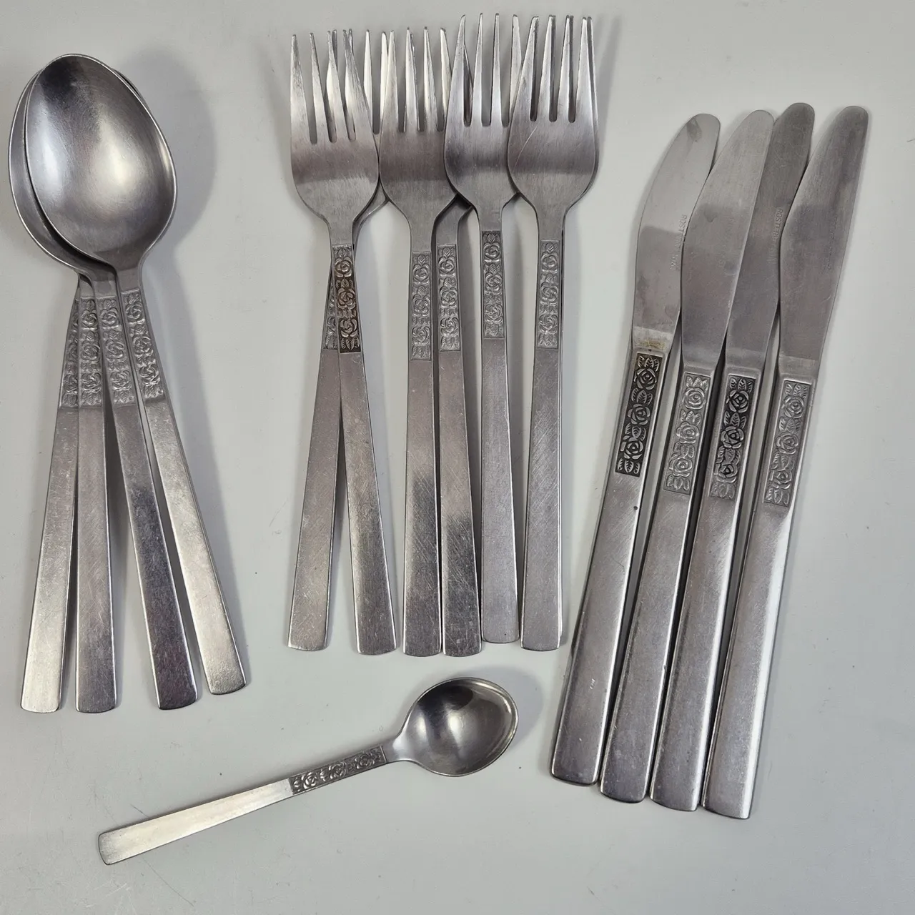 7st gafflar, 4st knivar, 4st matskedar, 1st tesked