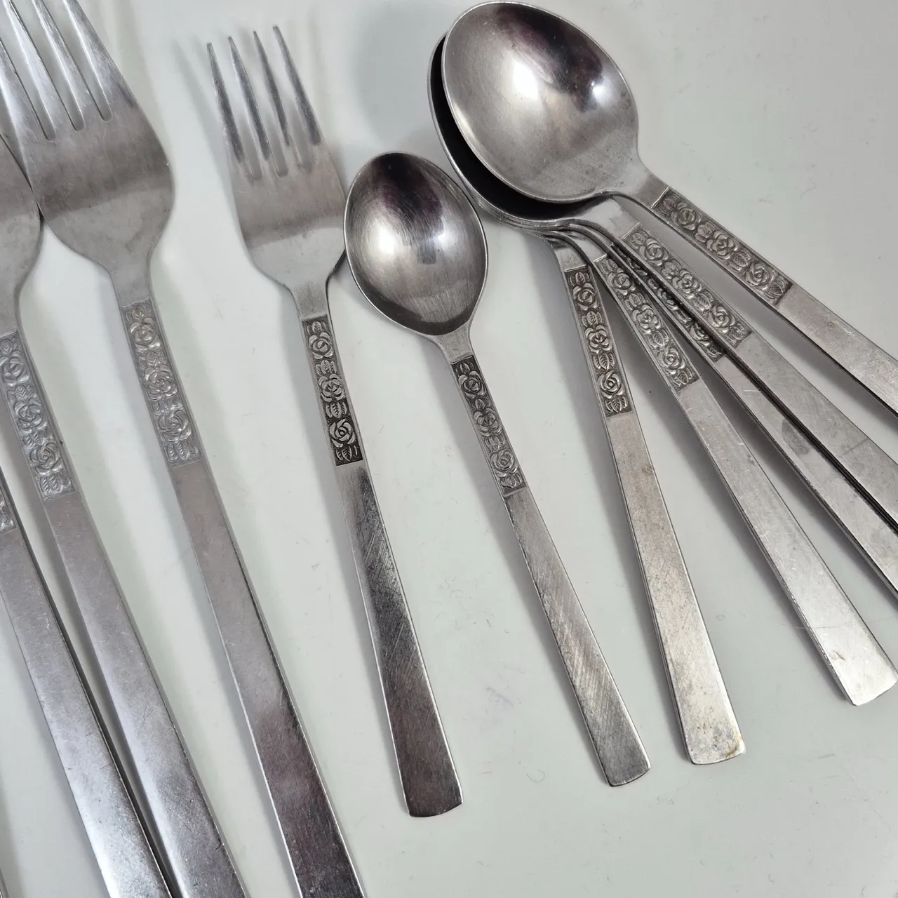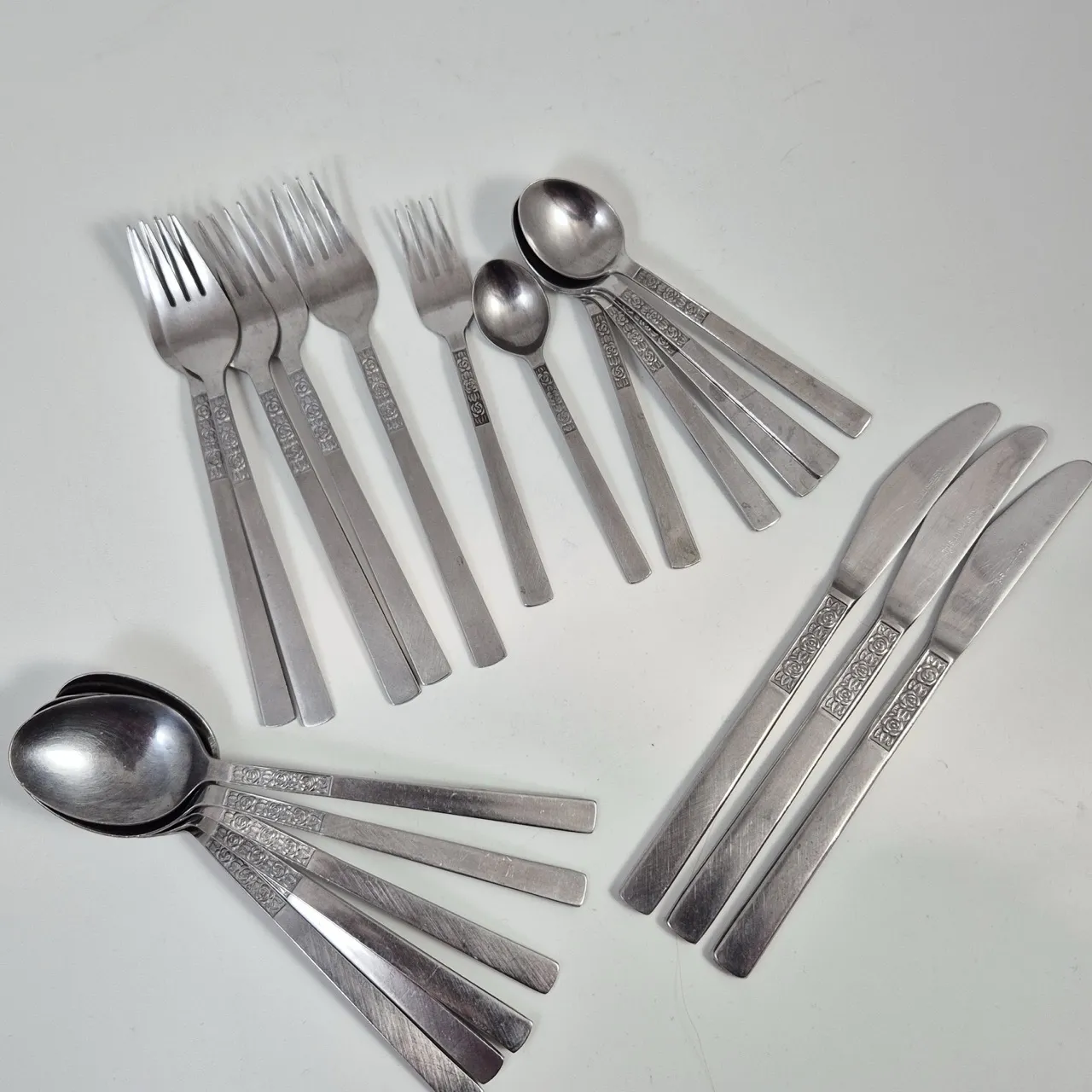 5st gafflar, 3st knivar, 6st matskedar, 1st liten gaffel, 5st tesked, 1st kaffesked