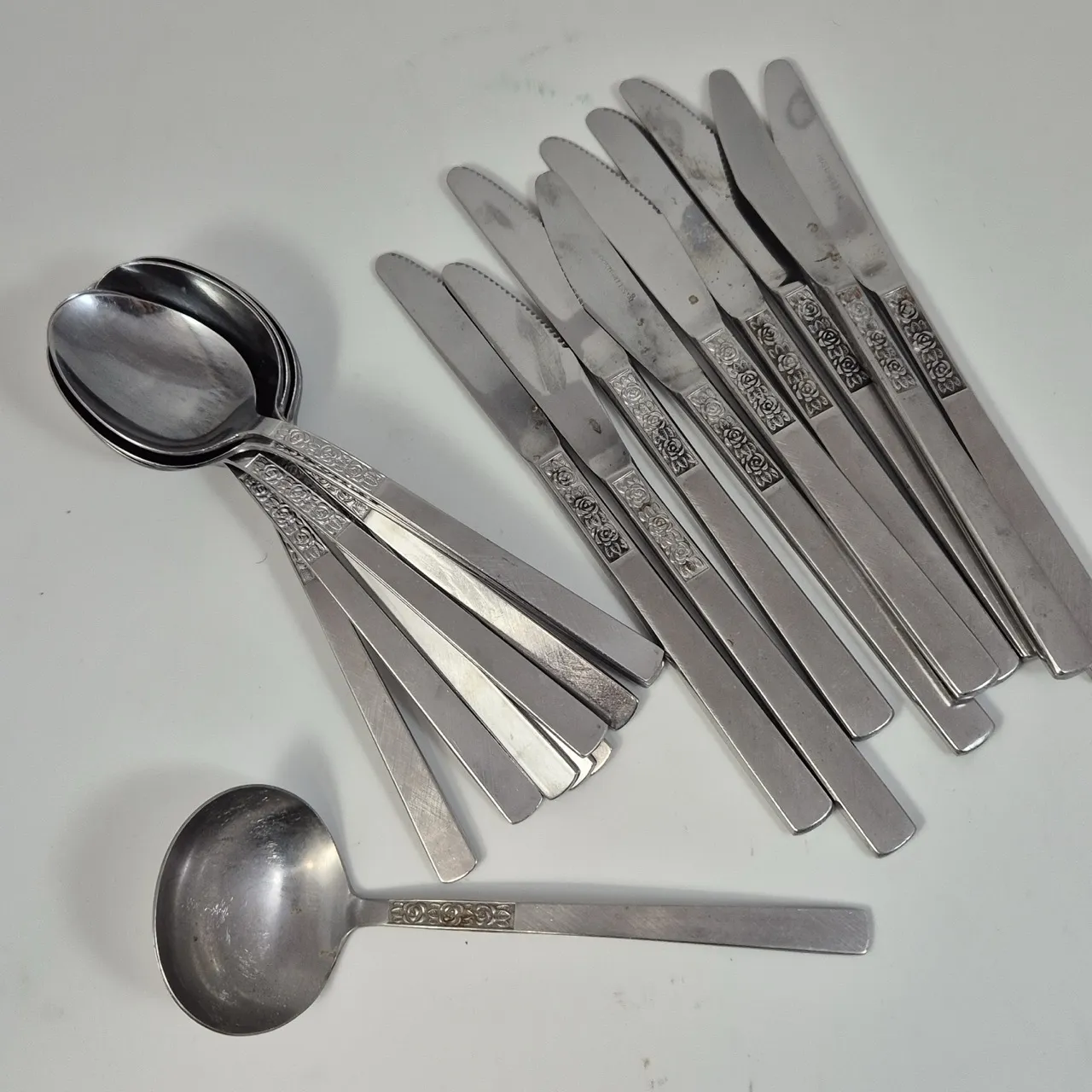 Bestick Rosen. Såsslev, 9st knivar, 9st matskedar