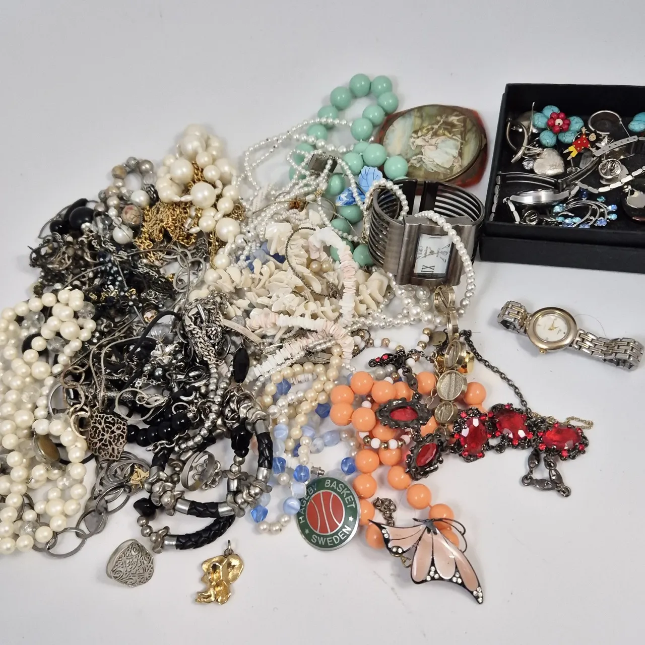 En samling av massa olika smycken