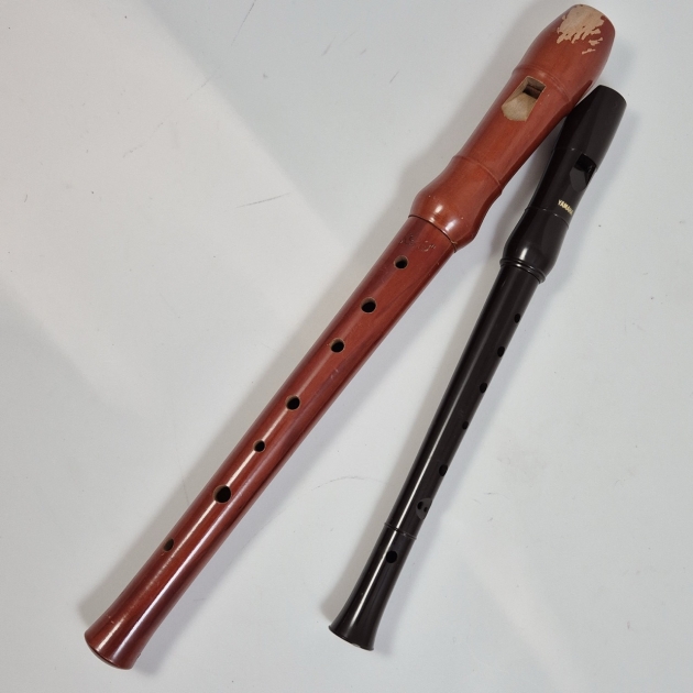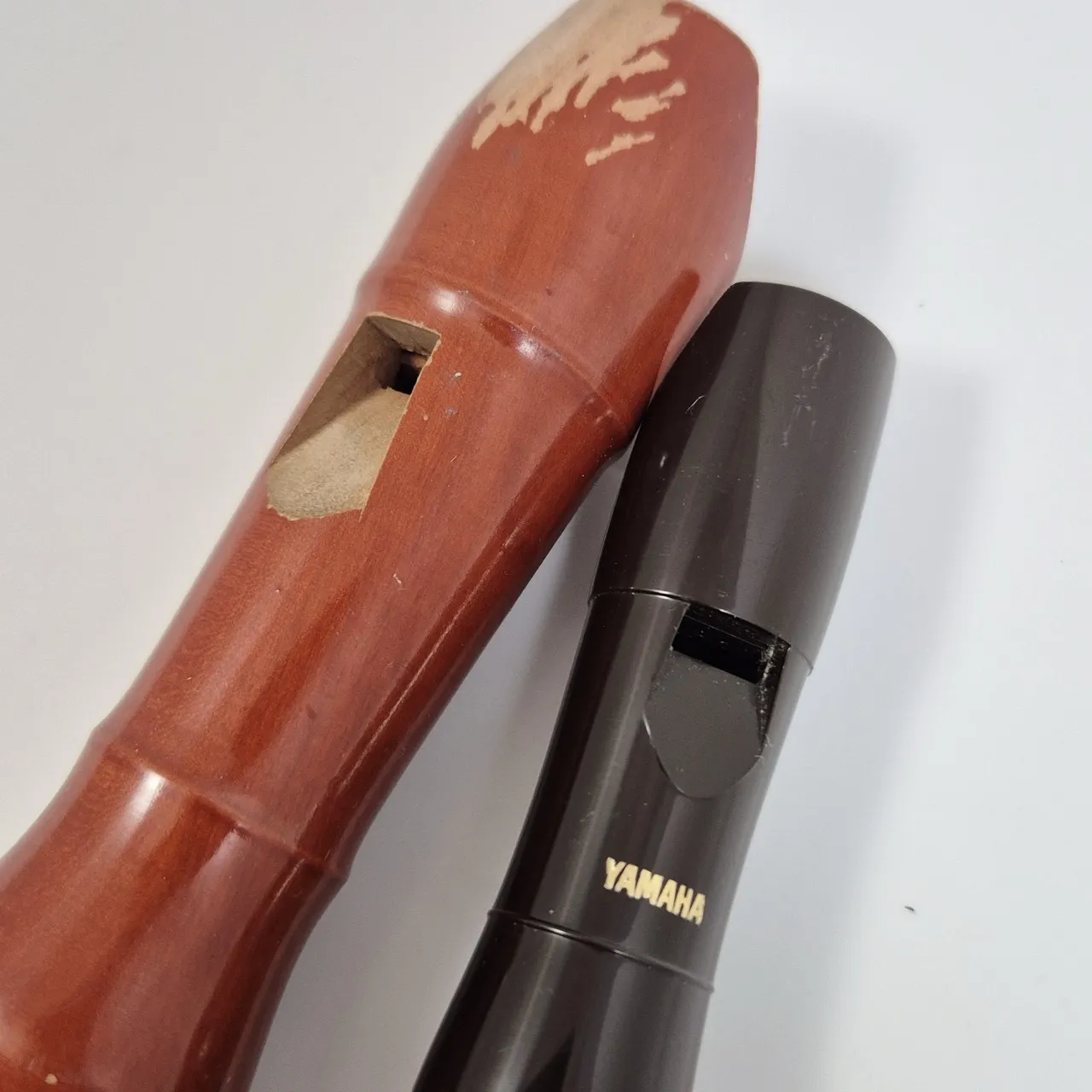 2st blockflöjtar. En i trä L.32.5cm , en i plast