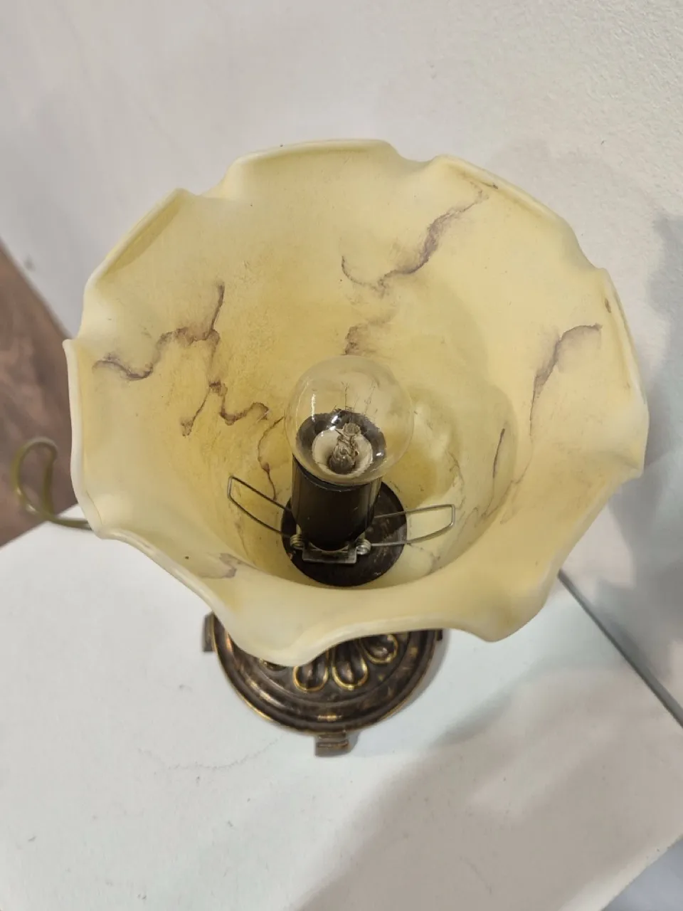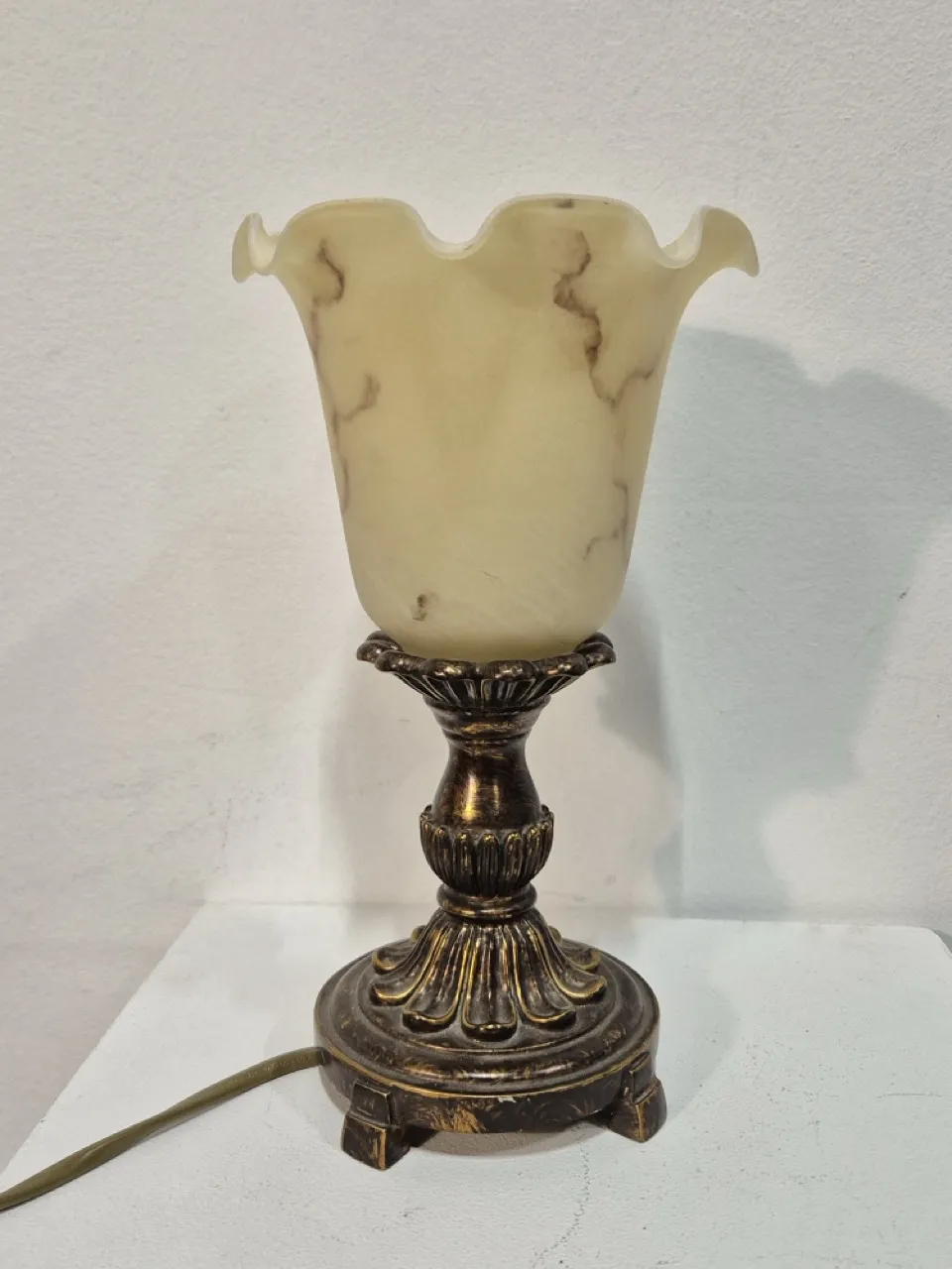 Bordslampa med glasskärm H.24cm . Ej testad
