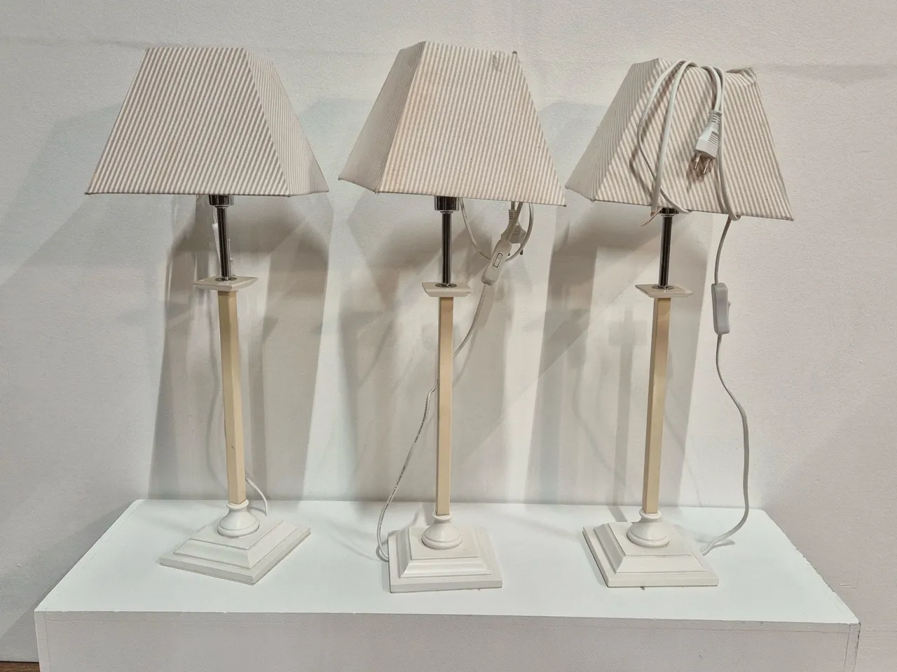 3st högre bordslampor. Skärmarna har fläckar och skavanker. H.61cm . Ej testade