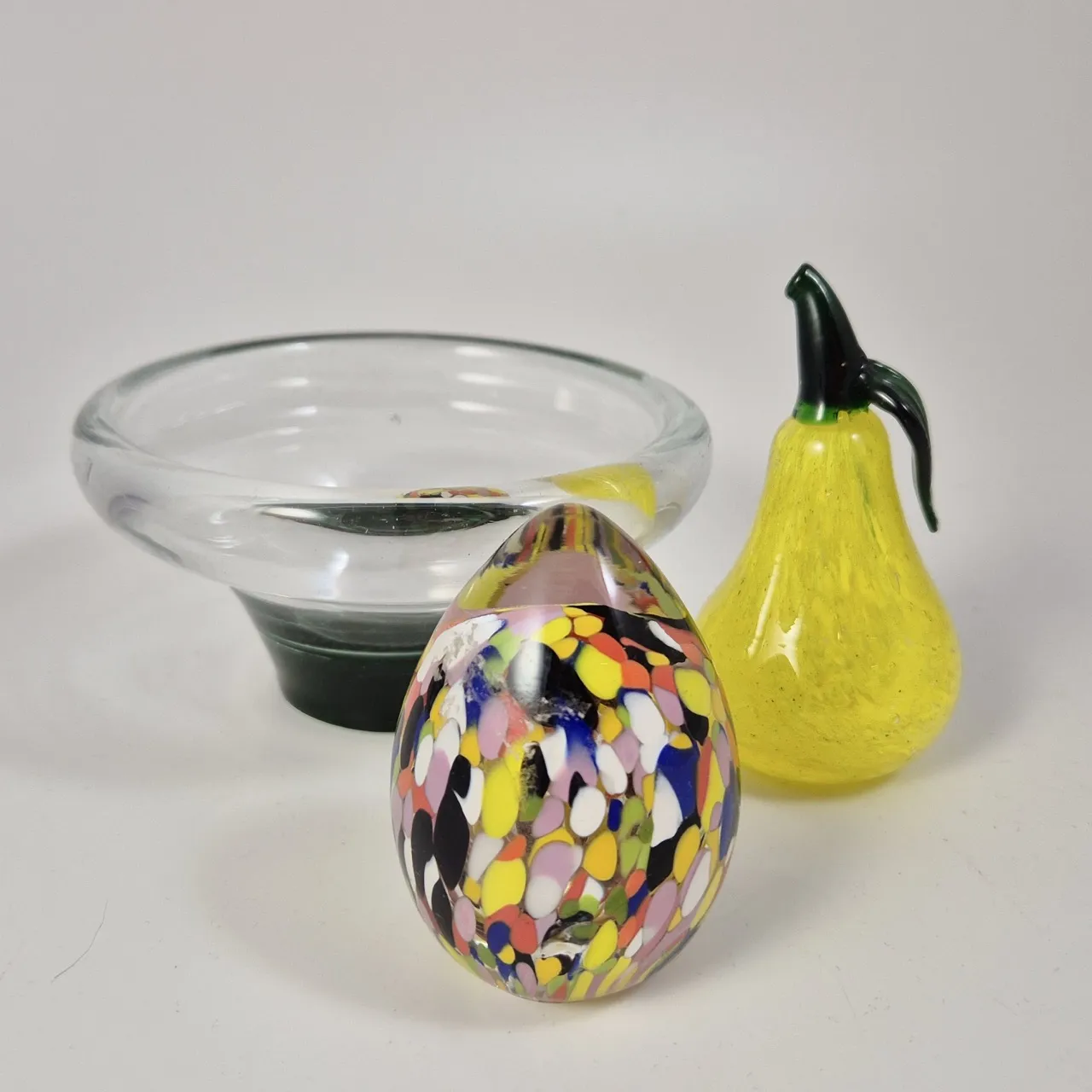Brevpress ägg Mantorp, Glaspäron H.10cm, liten skål