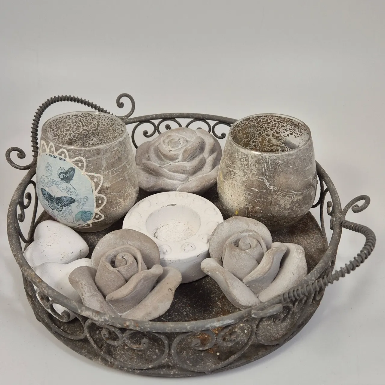 Bricka D.27cm , betongrosor, ljuslyktor mm.