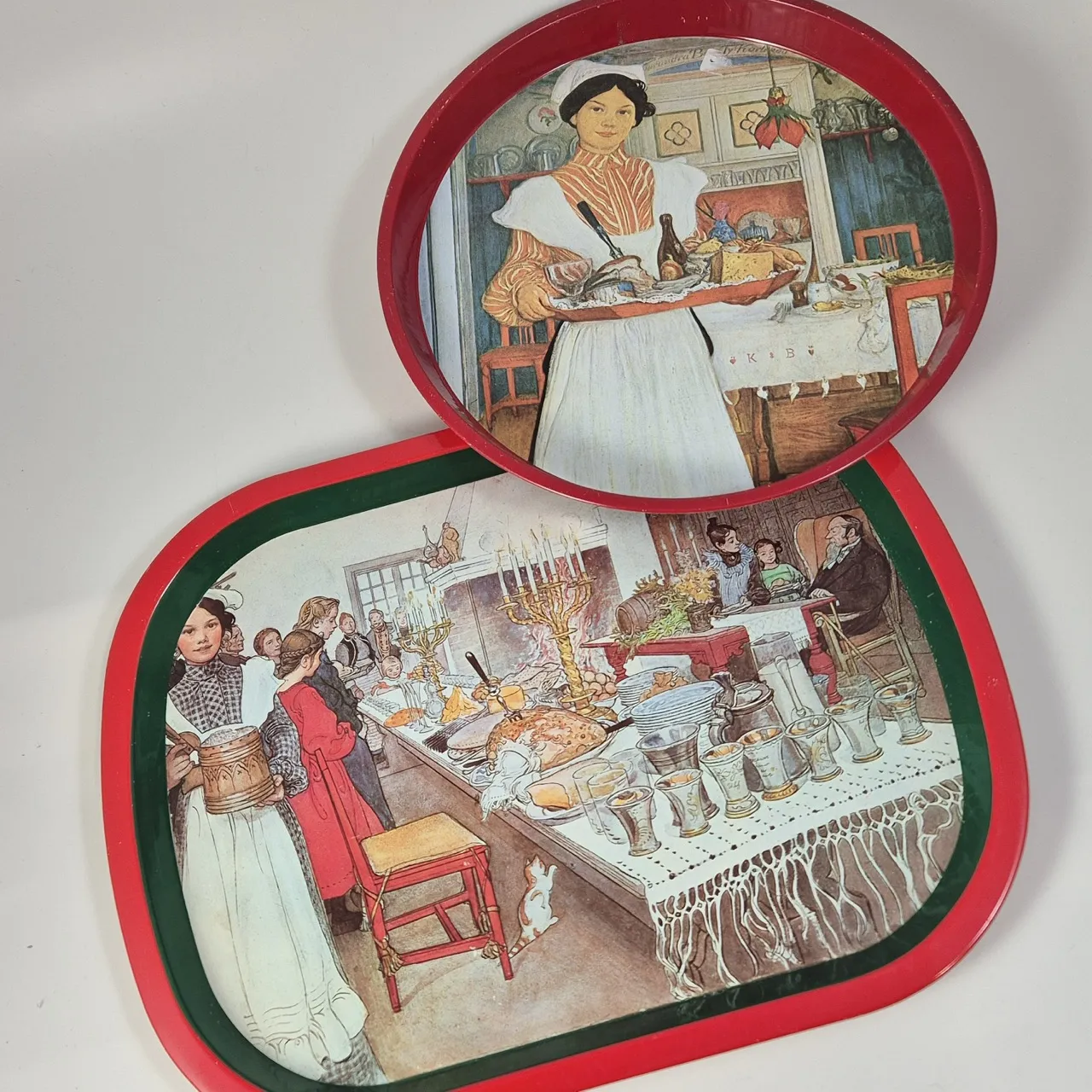 Stor plåtbricka med Carl Larsson motiv. Skav . 41x31cm