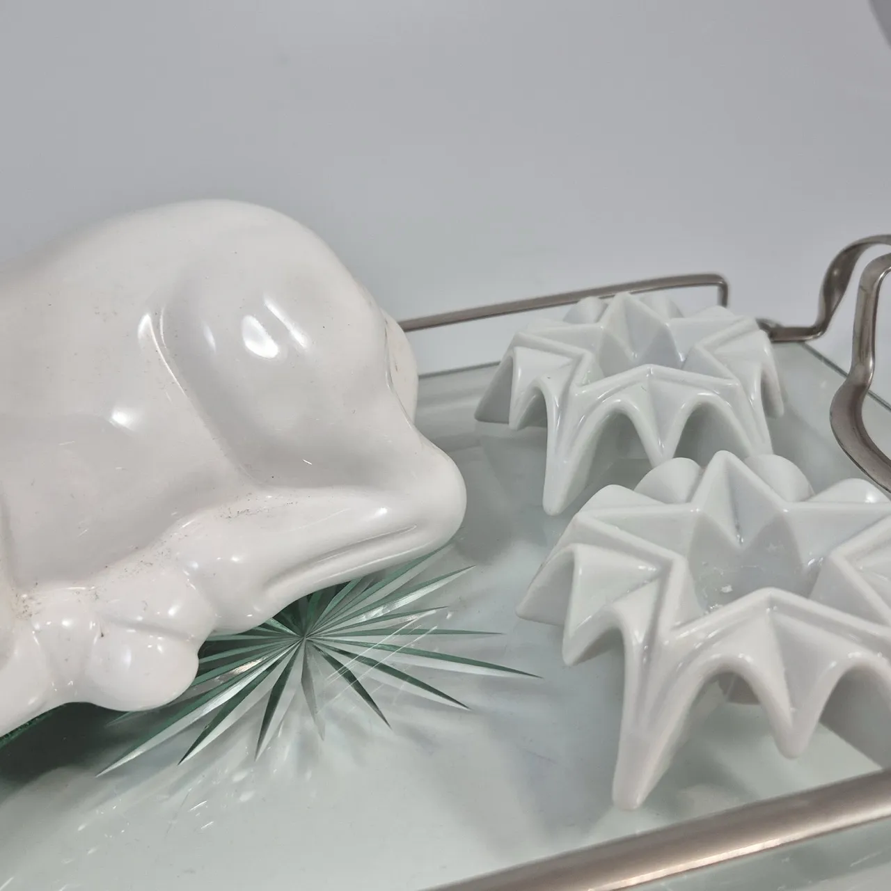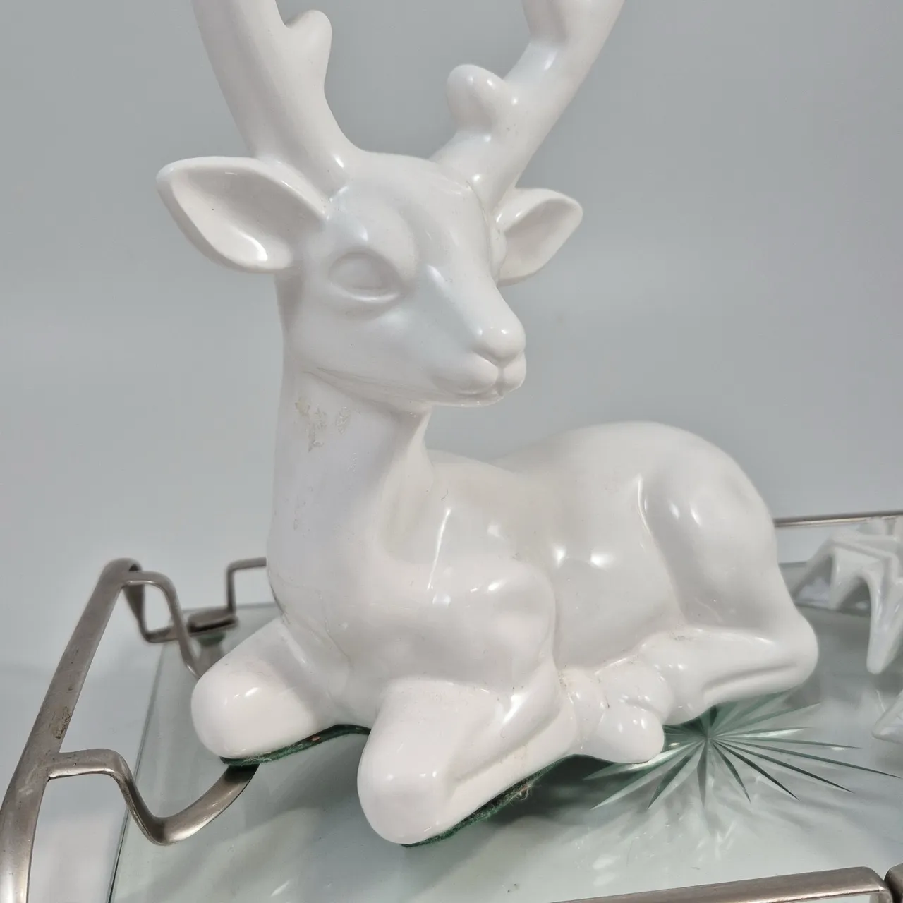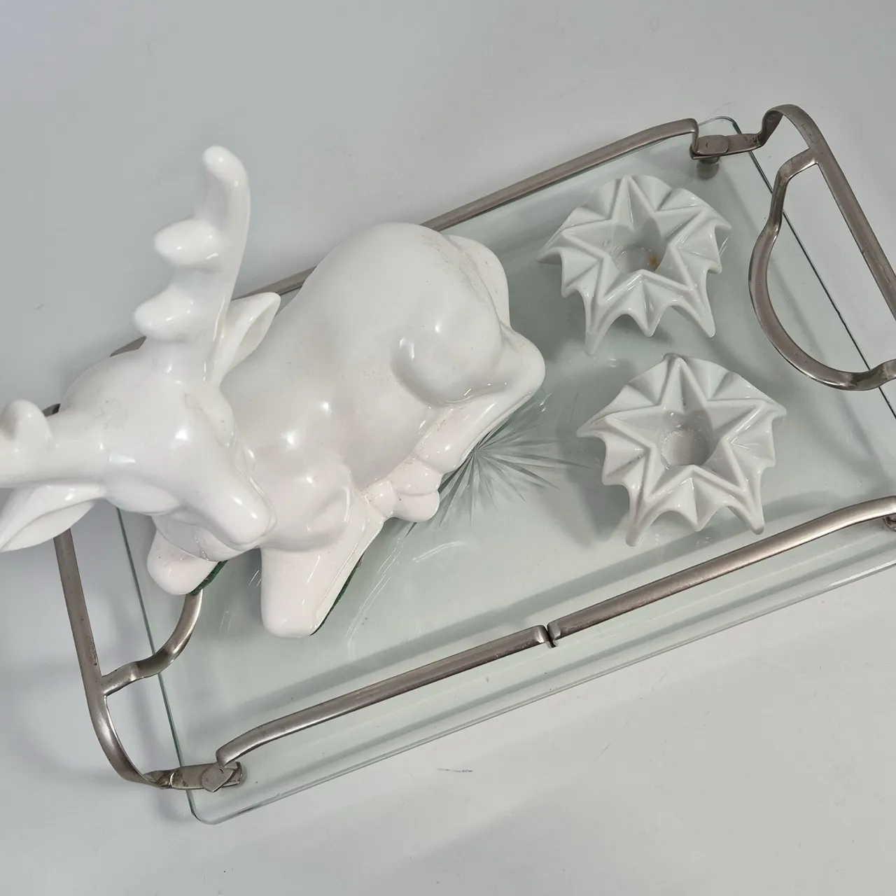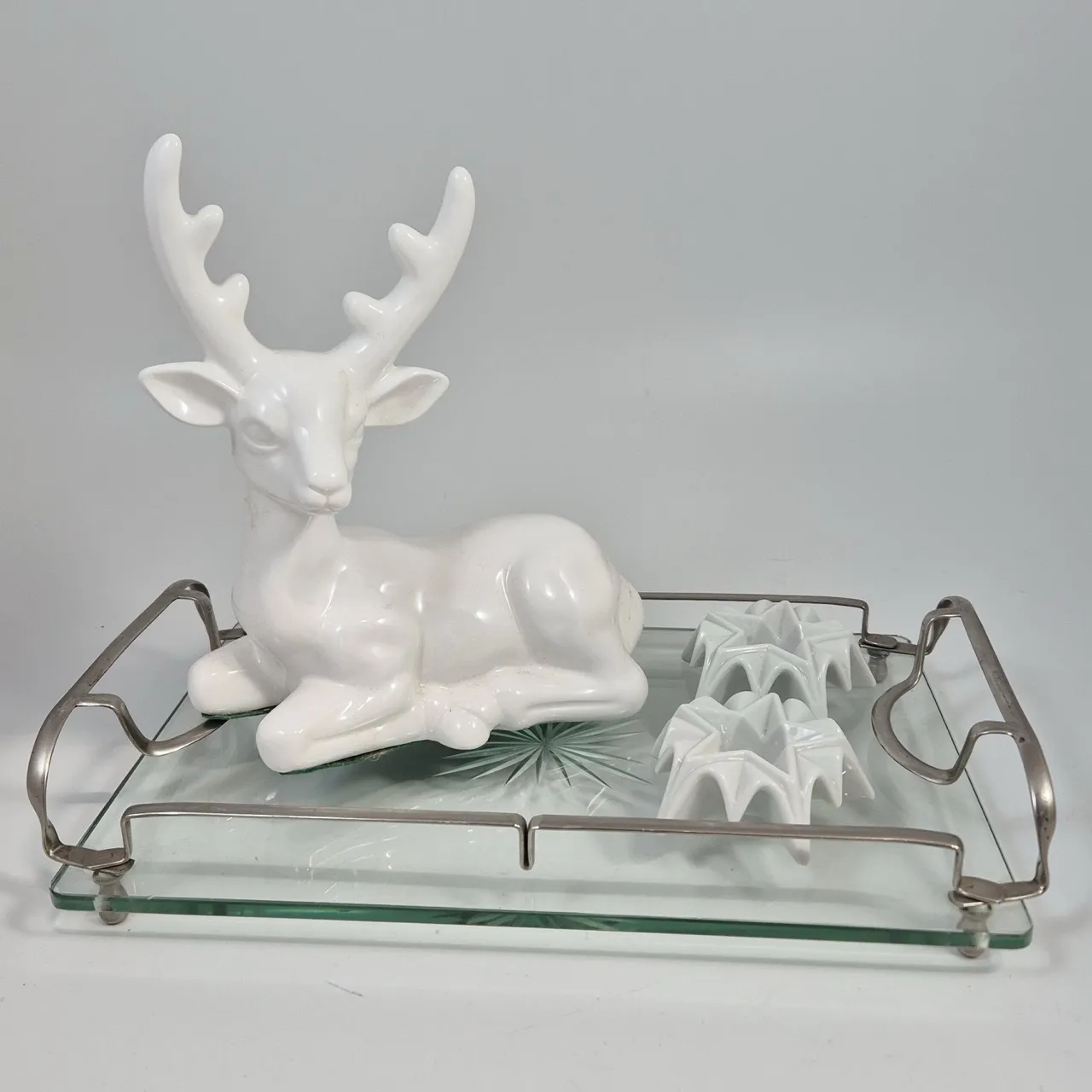Hjort figurin H.ca 21cm , 2st ljusstakar, bricka i glas
