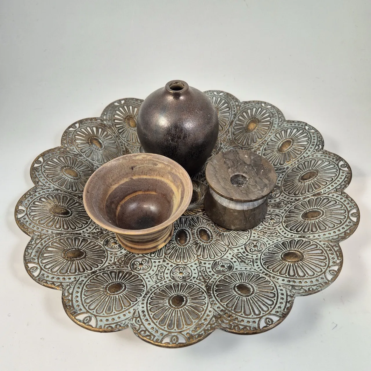 Metallbricka , fin att dekorera med i trädgården. D 36cm