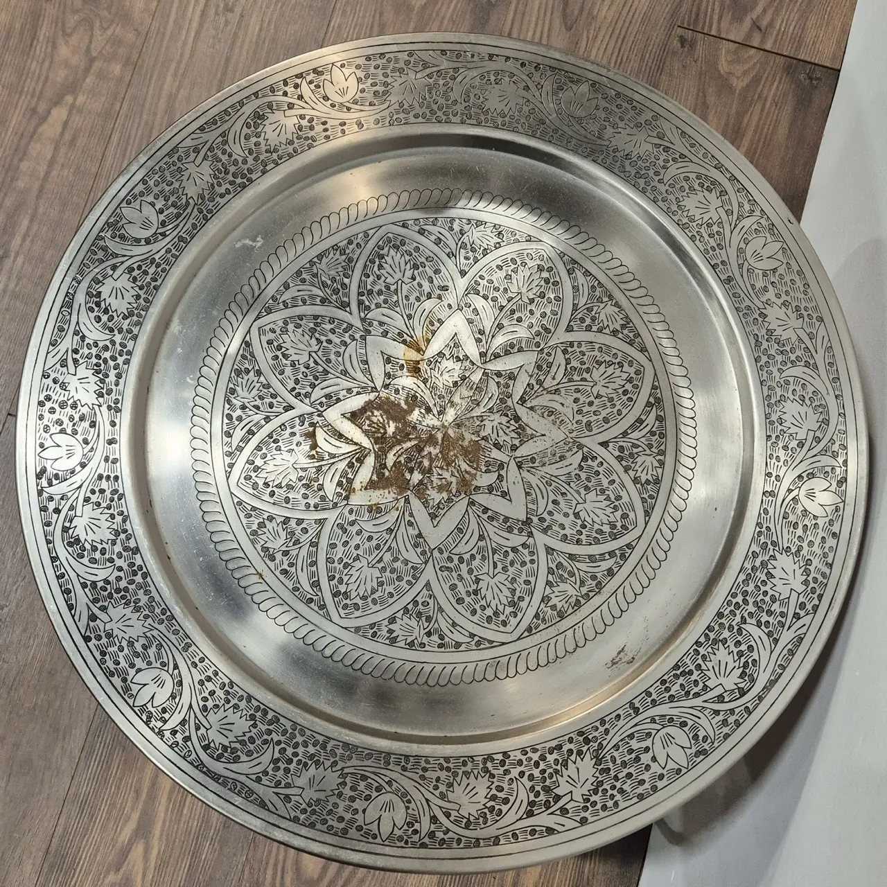 Brickbord. Brickan har rostfläckar.