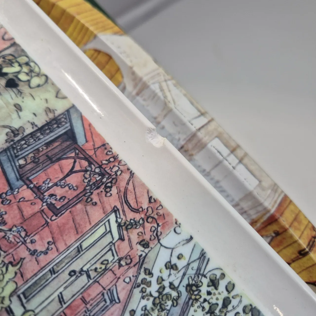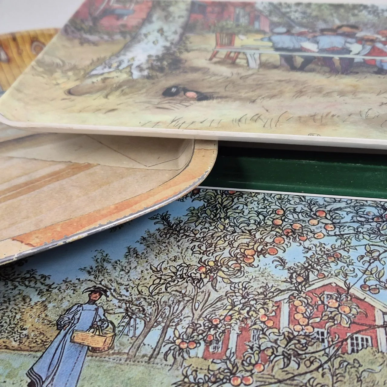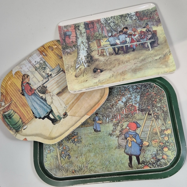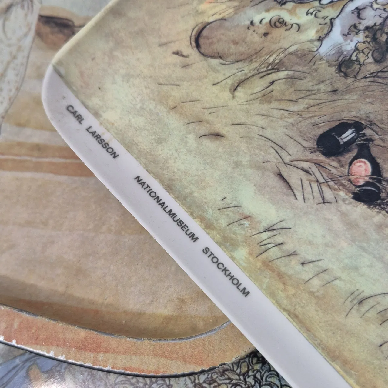 Brickor med Carl Larsson motiv, 2st i plåt (skav finns), 1st i plast med nagg . Största 40x28cm