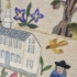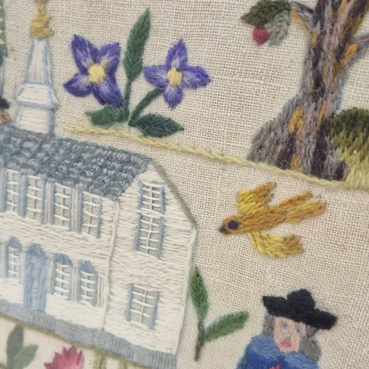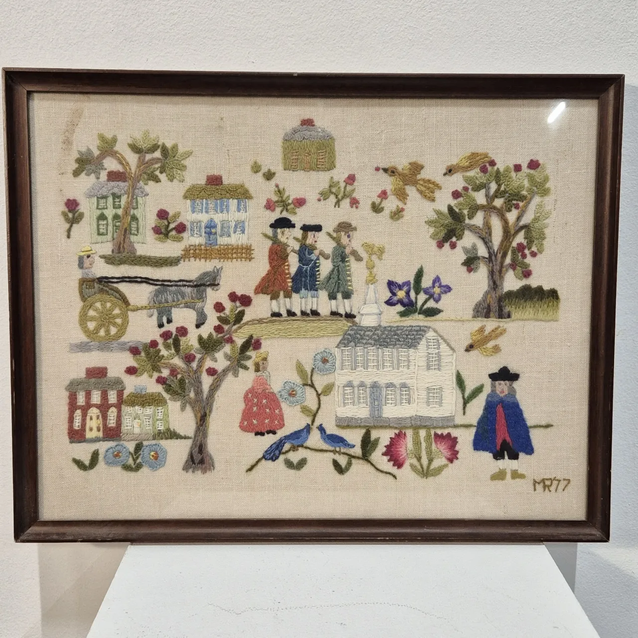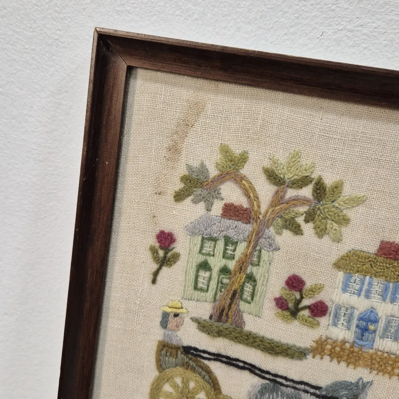 Broderad tavla, inglasad. Fläck på tyget. 40x31cm