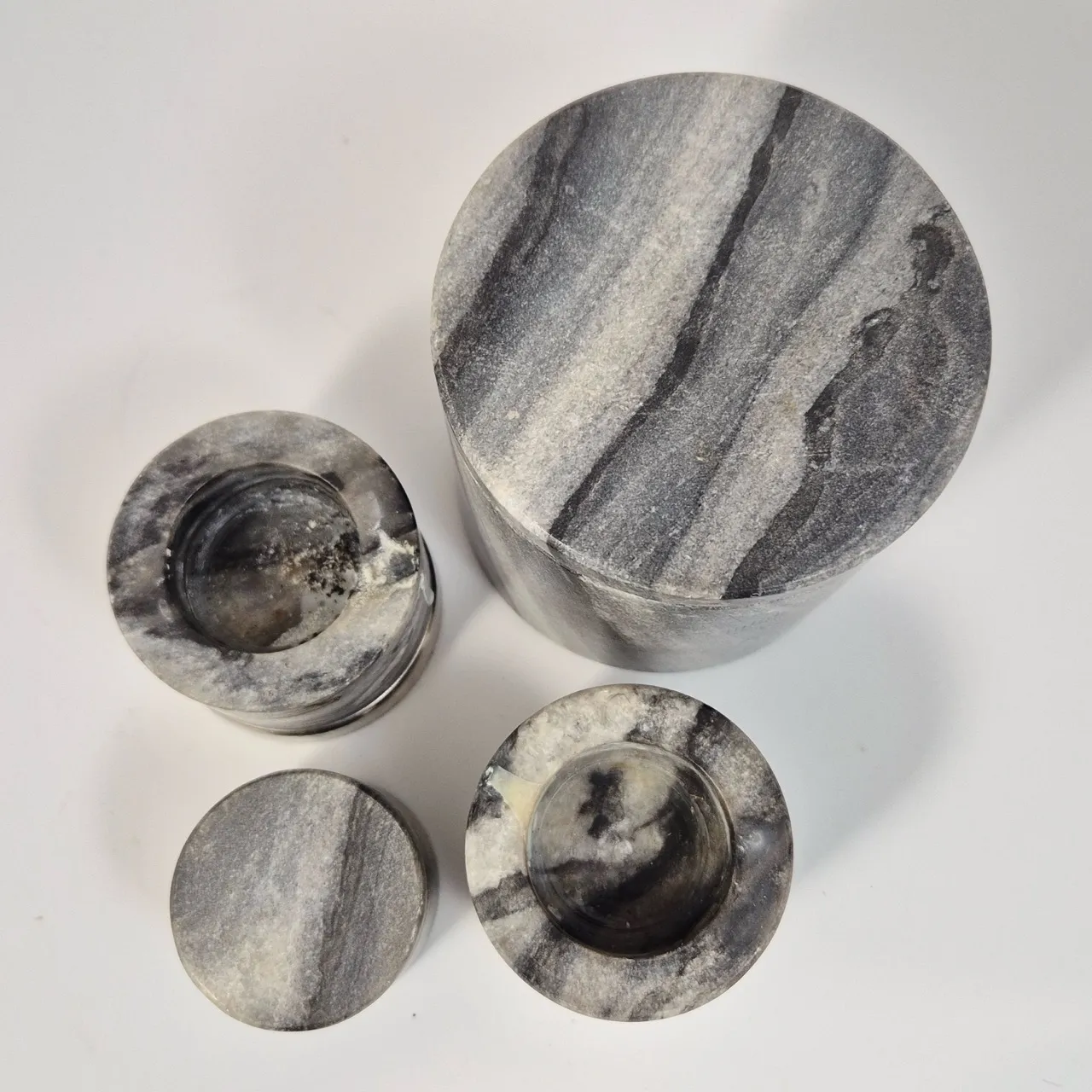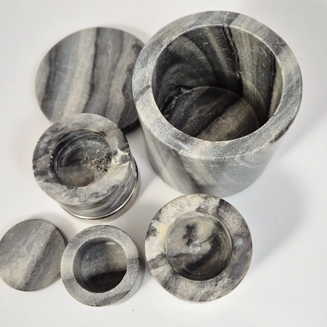 2st burkar i sten Största H.10.5cm, 2st ljuslyktor