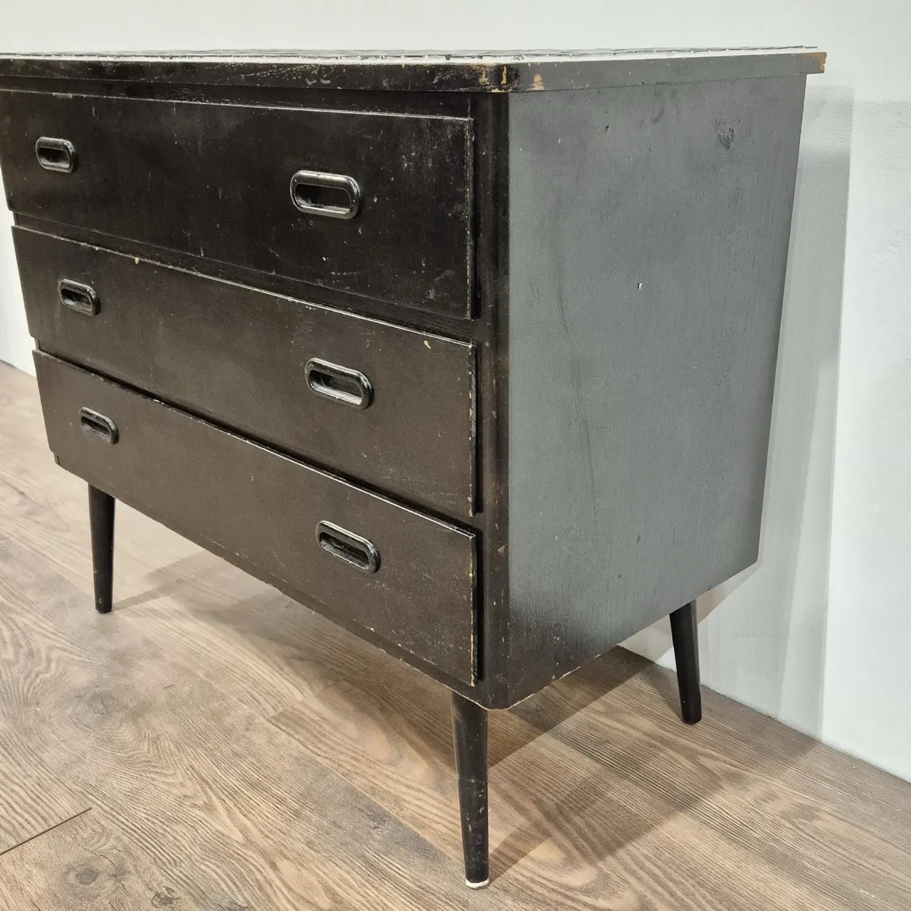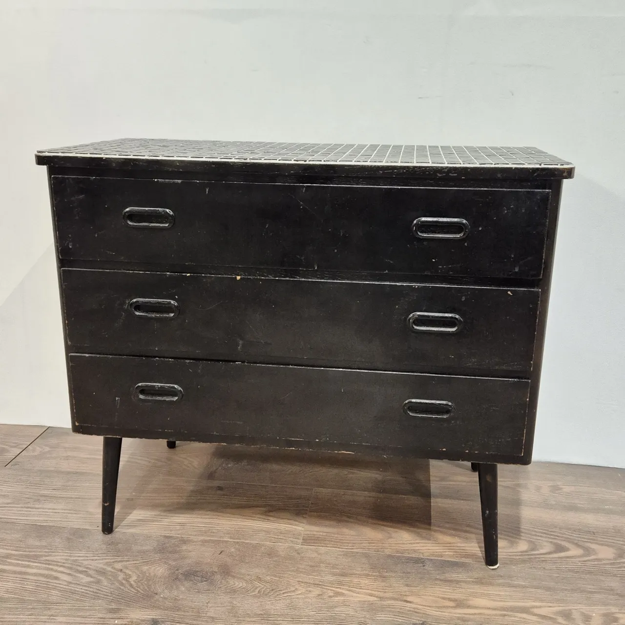 Retro ommålad byrå med mosaiktopp. Skrapmärken. H.67cm 80x38cm