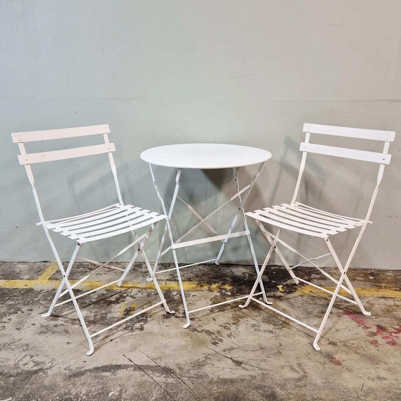 Caféset till trädgården. Hopfällbart i metall