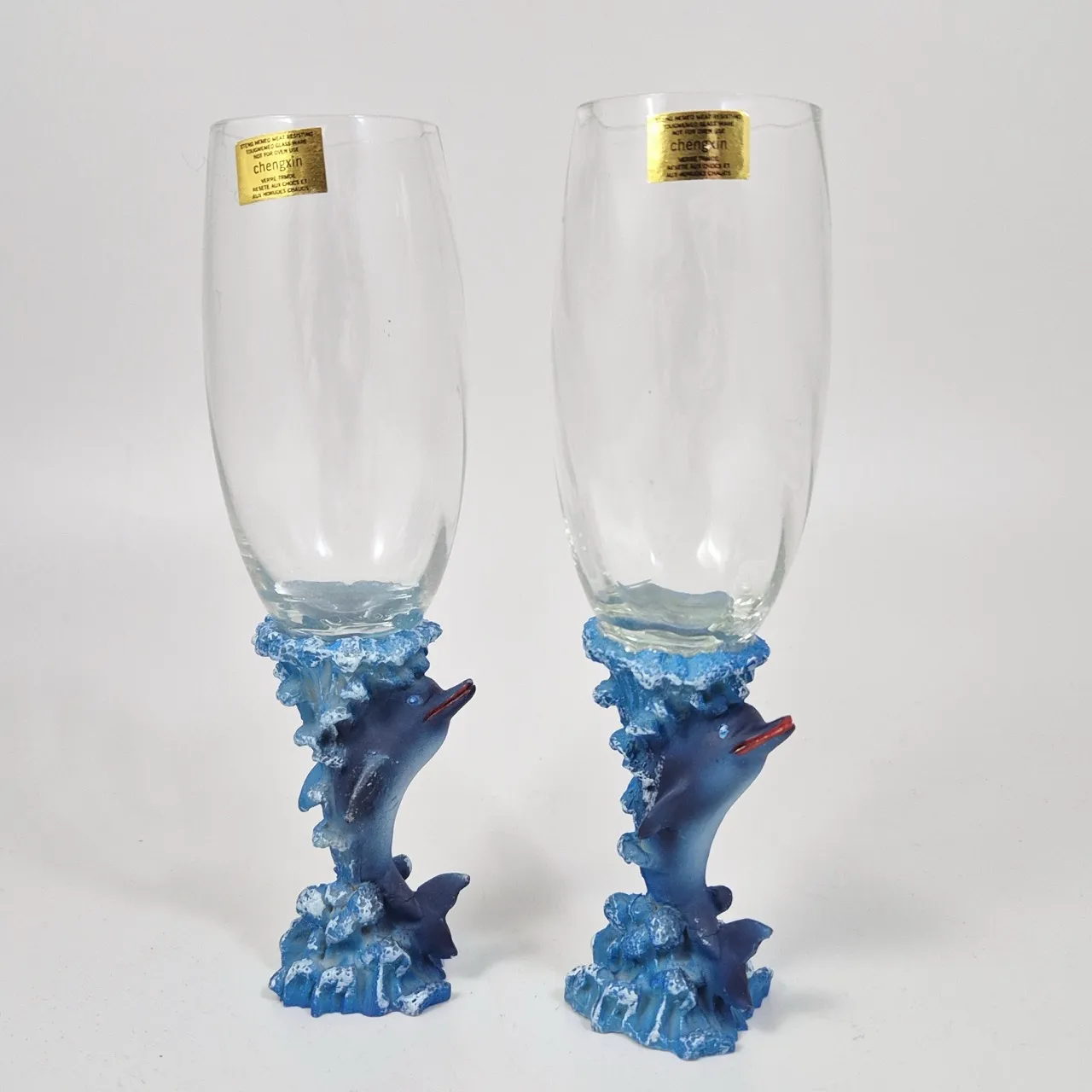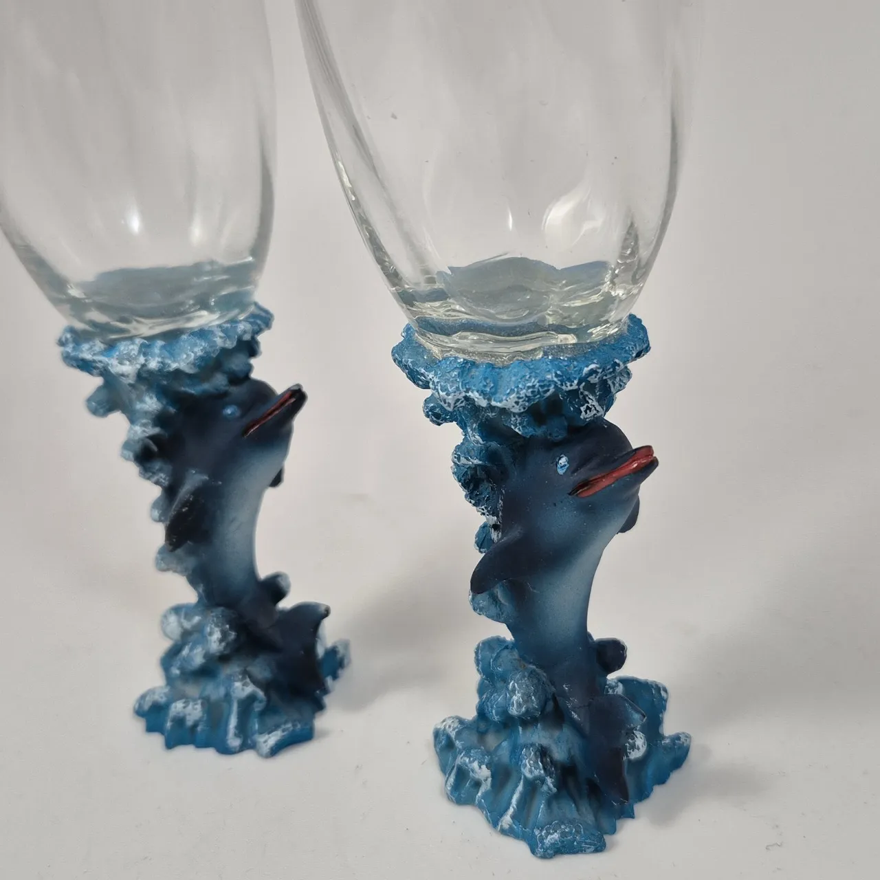 2st champagneglas med delfinfötter H.18.5cm