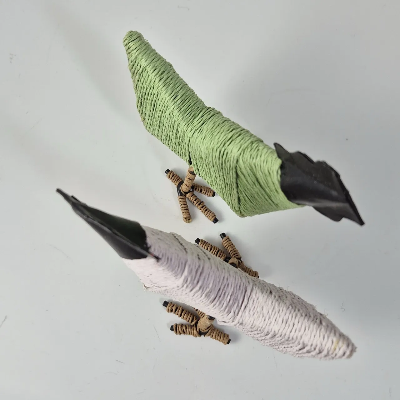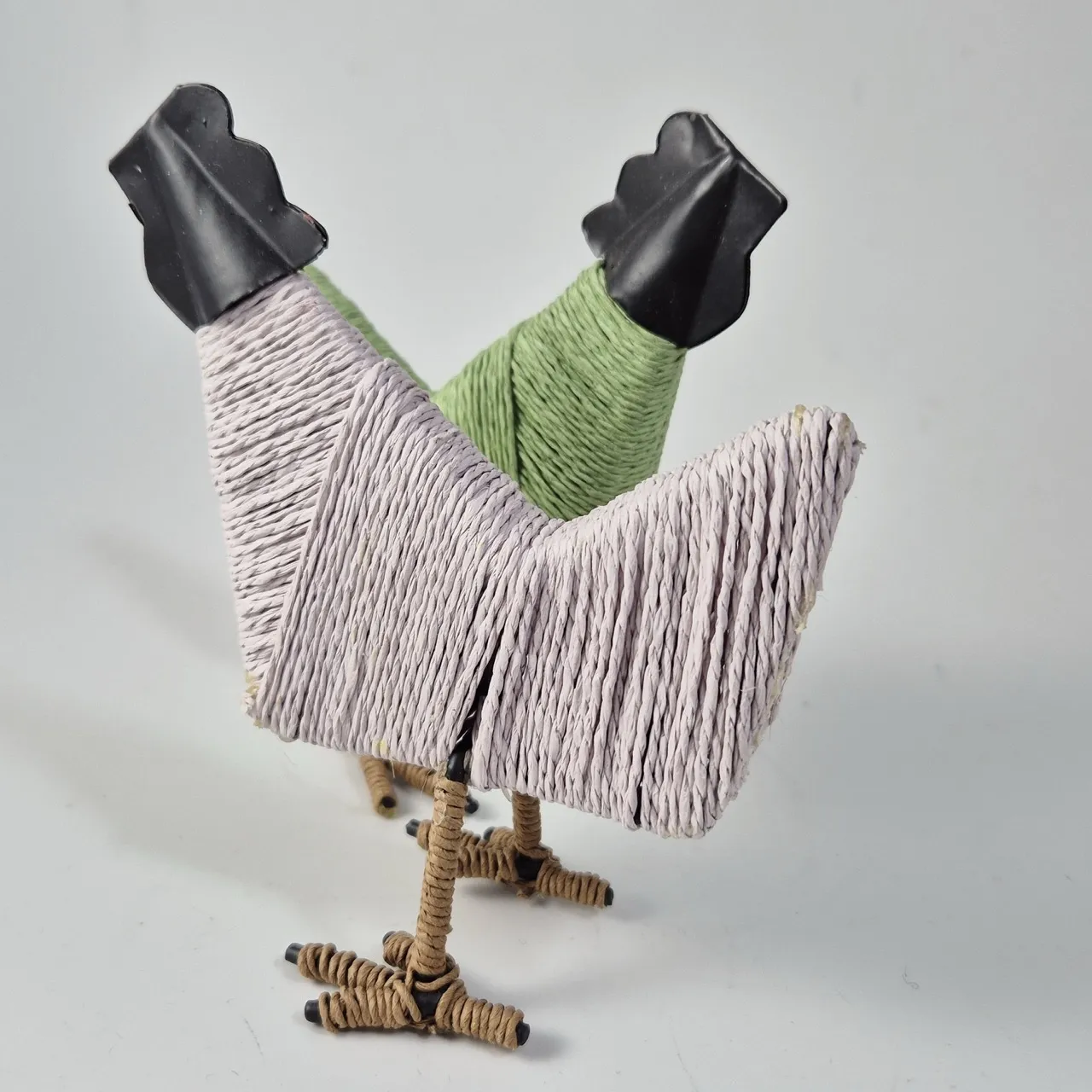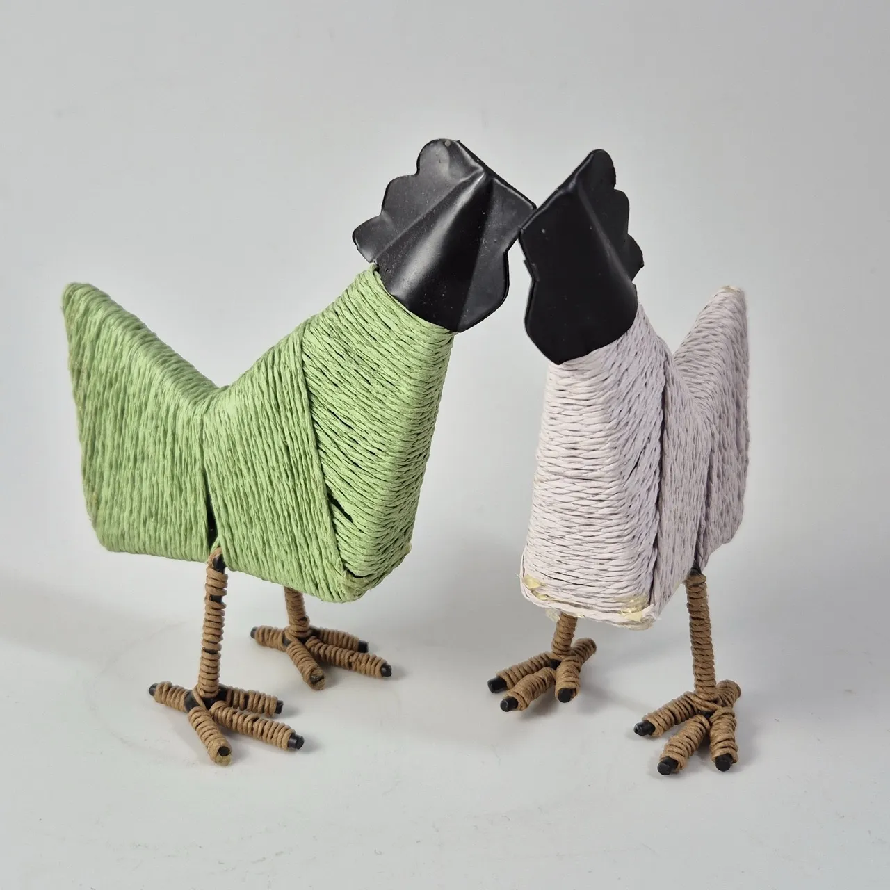 2st hönor i metall klädda med garn .H.14cm