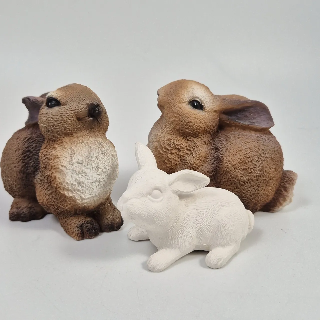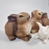 2st kaniner i plast H, ca 10,5cm , 1st i porslin.