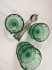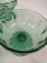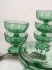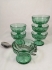 6st dessertskålar i grönt glas, 1 har en spricka i botten.