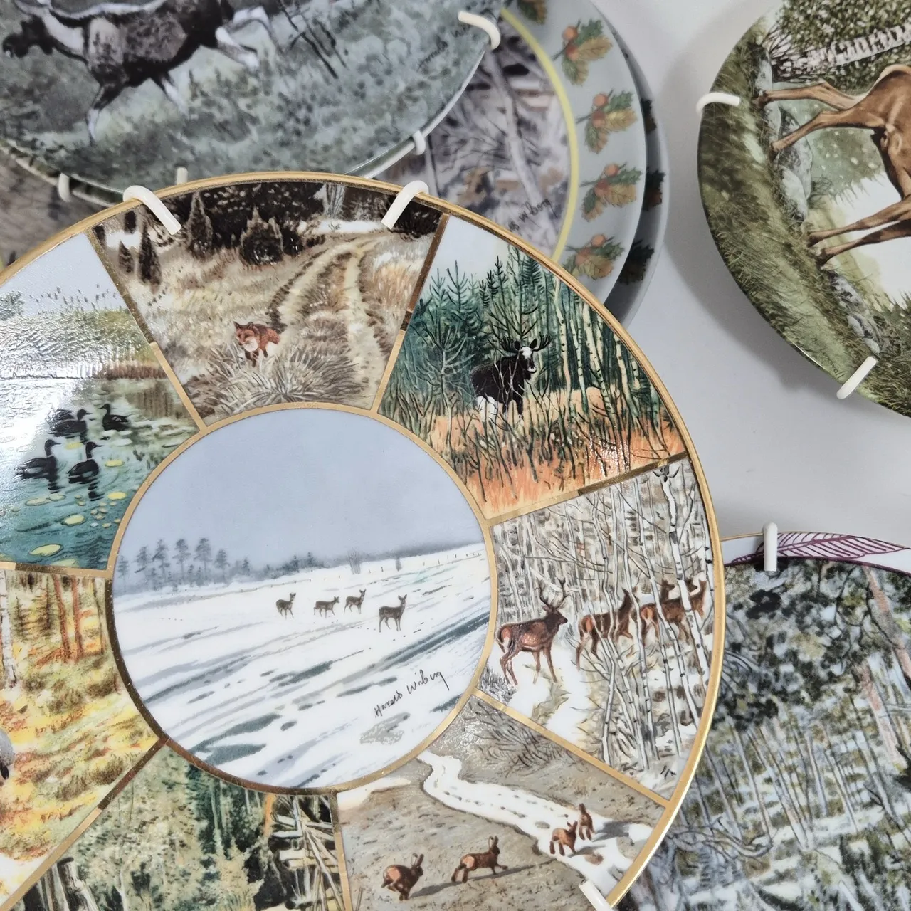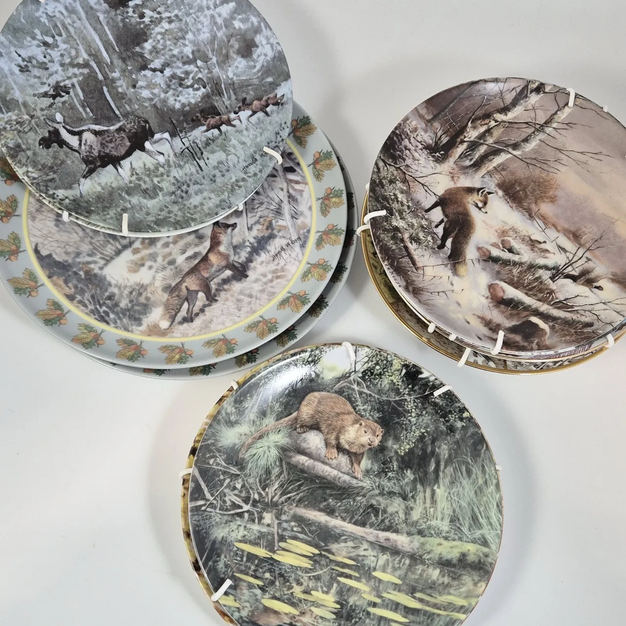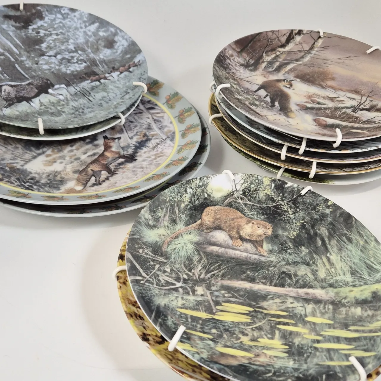 Samlartallrikar med djurmotiv från olika tillverkare t.ex. rörstrand, guldkroken, höganäs med fler . 2st tallrikar, 9st assietter
