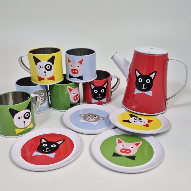 Dockservis i plåt. Pluppen till locket på kannan fattas