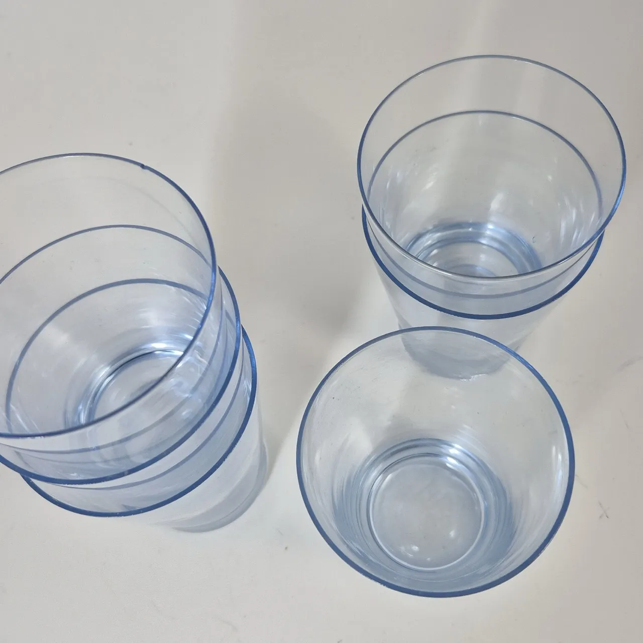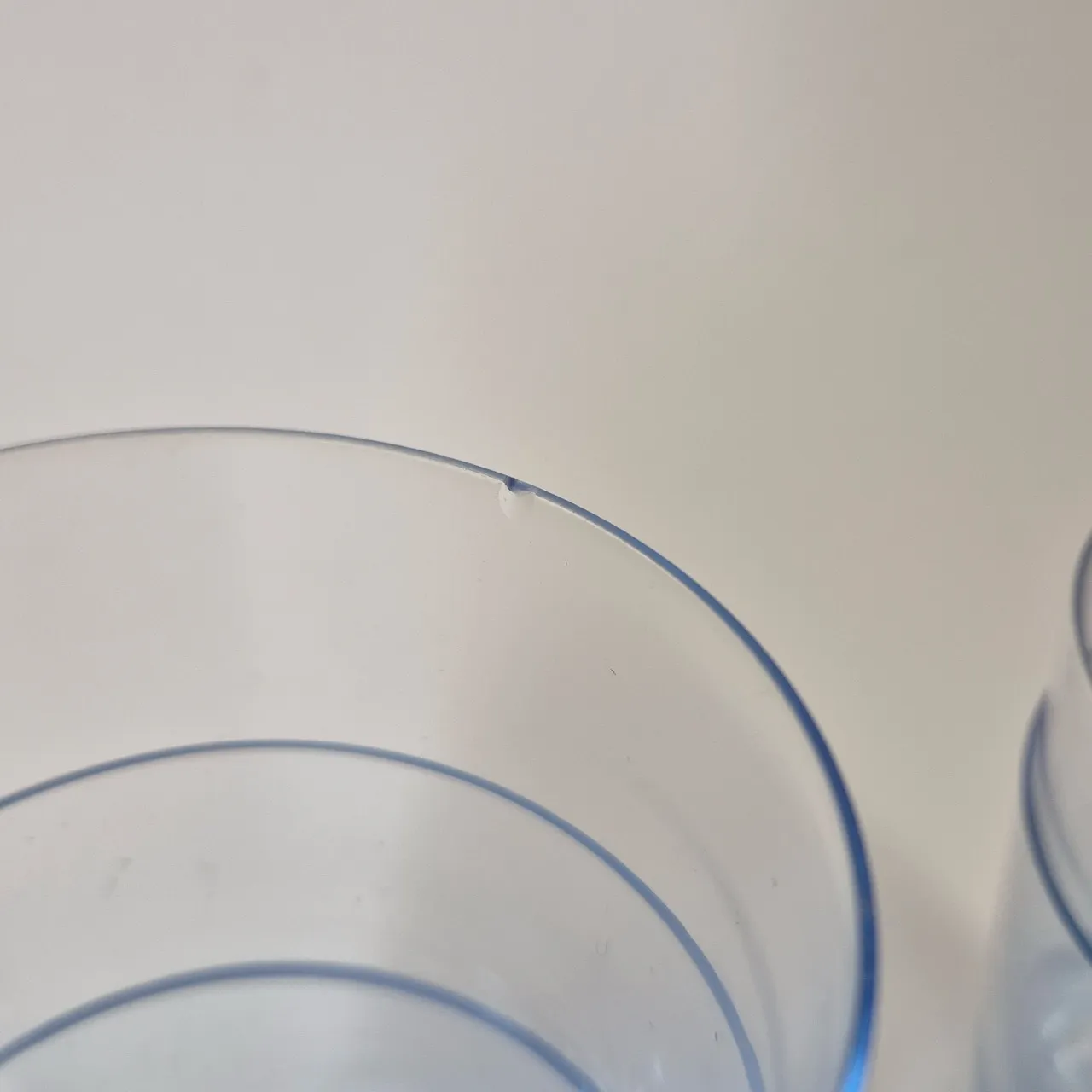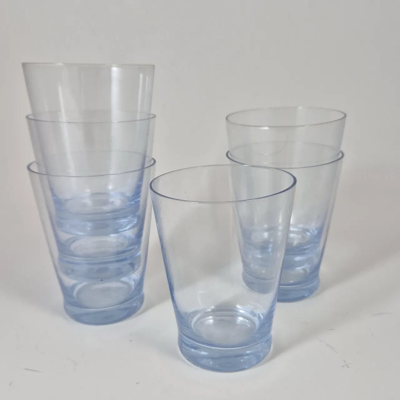 6st tunna dricksglas i blått. En har ett mjukt nagg. H.10cm