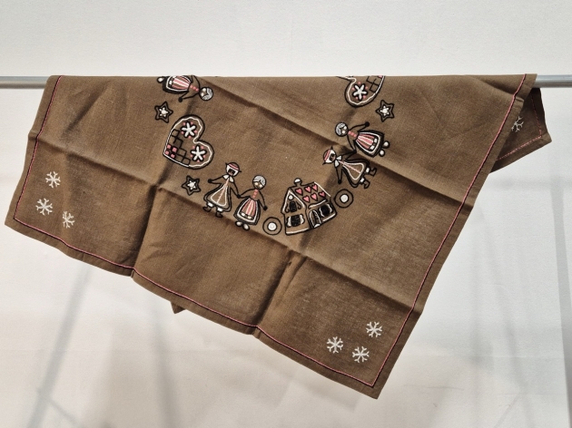 Duk med broderade pepparkakor 77x77cm