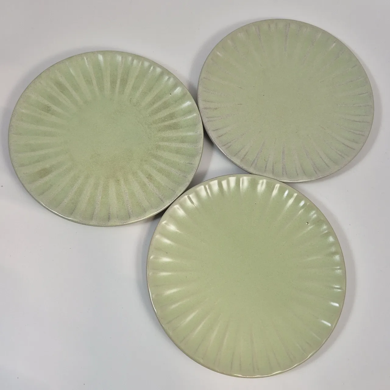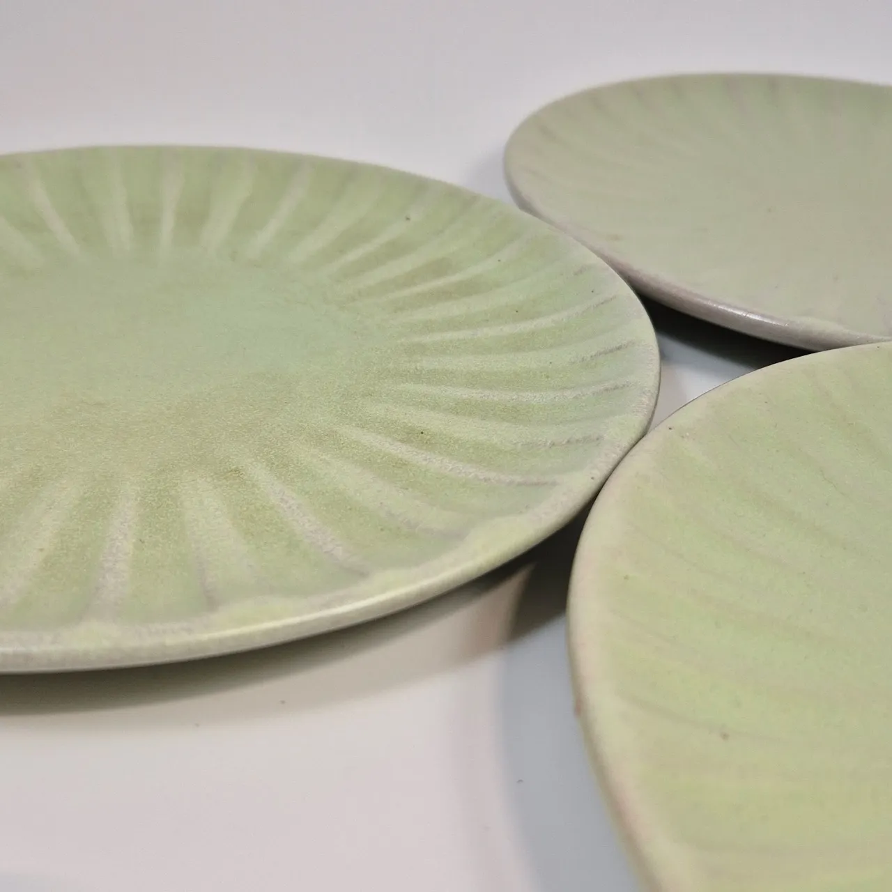 Ljusgröna ( lite olika nyanser på glasyren) assietter Ekeby. 3st