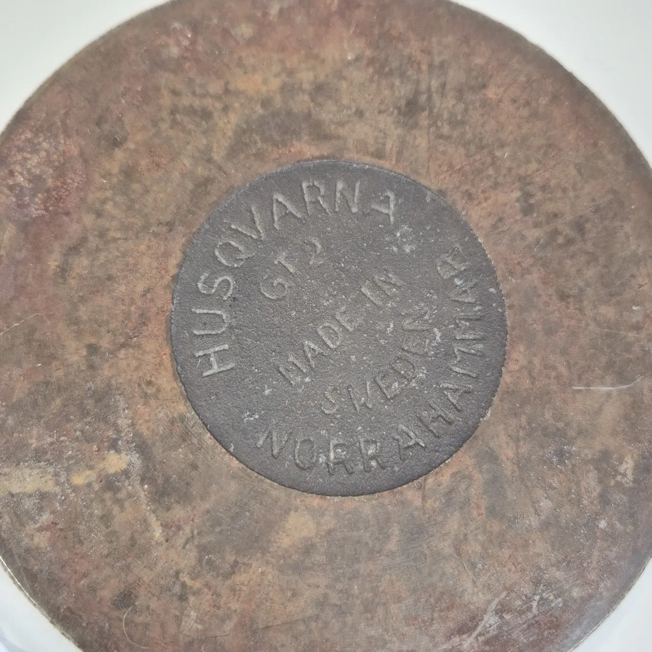 Emaljerad gjutjärnskarott från Husqvarna, saknar sitt lock. H.13.5cm