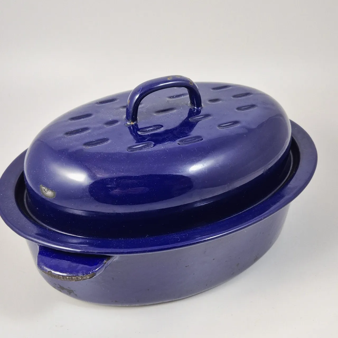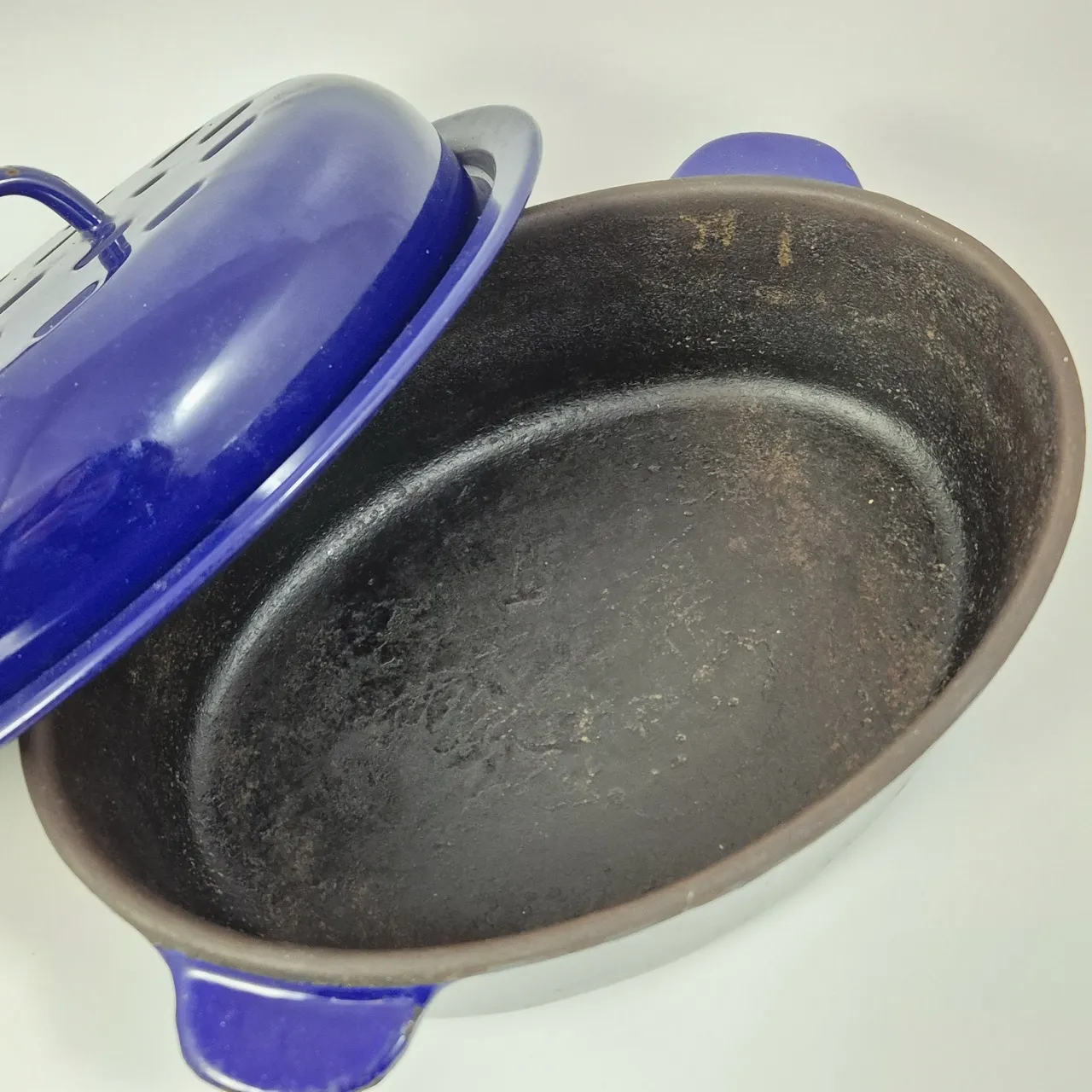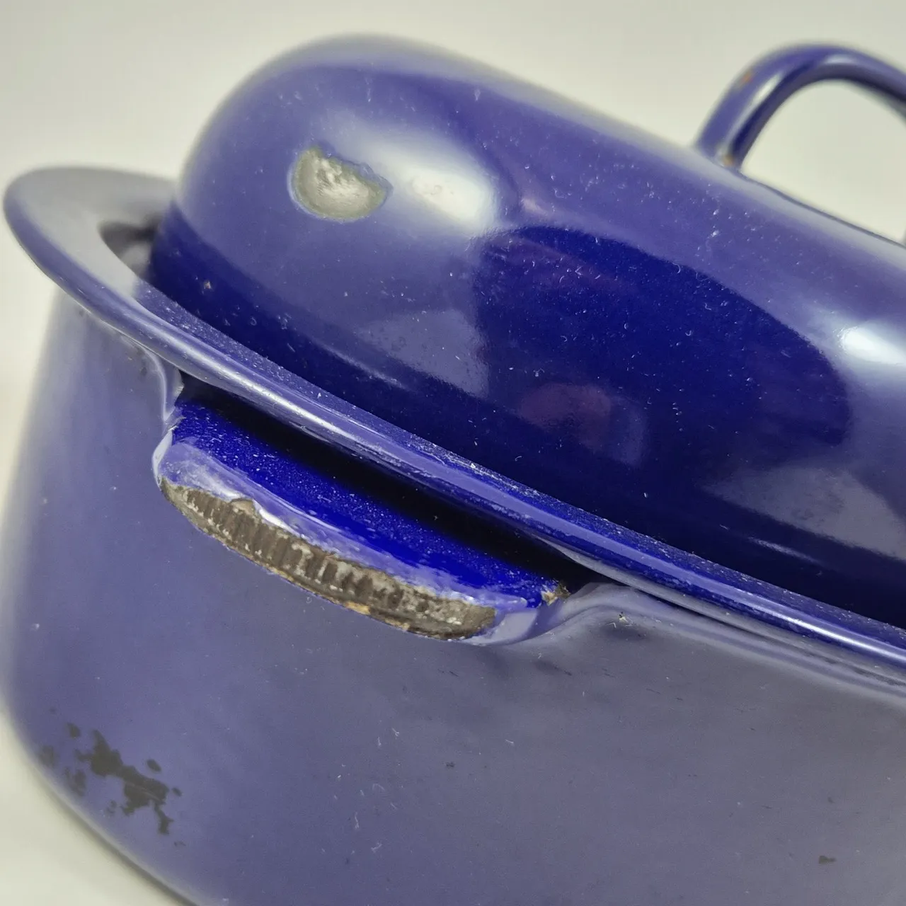 Emaljerad gjutjärnsgryta Kockums 3liter. Nagg finns , behöver rengöras