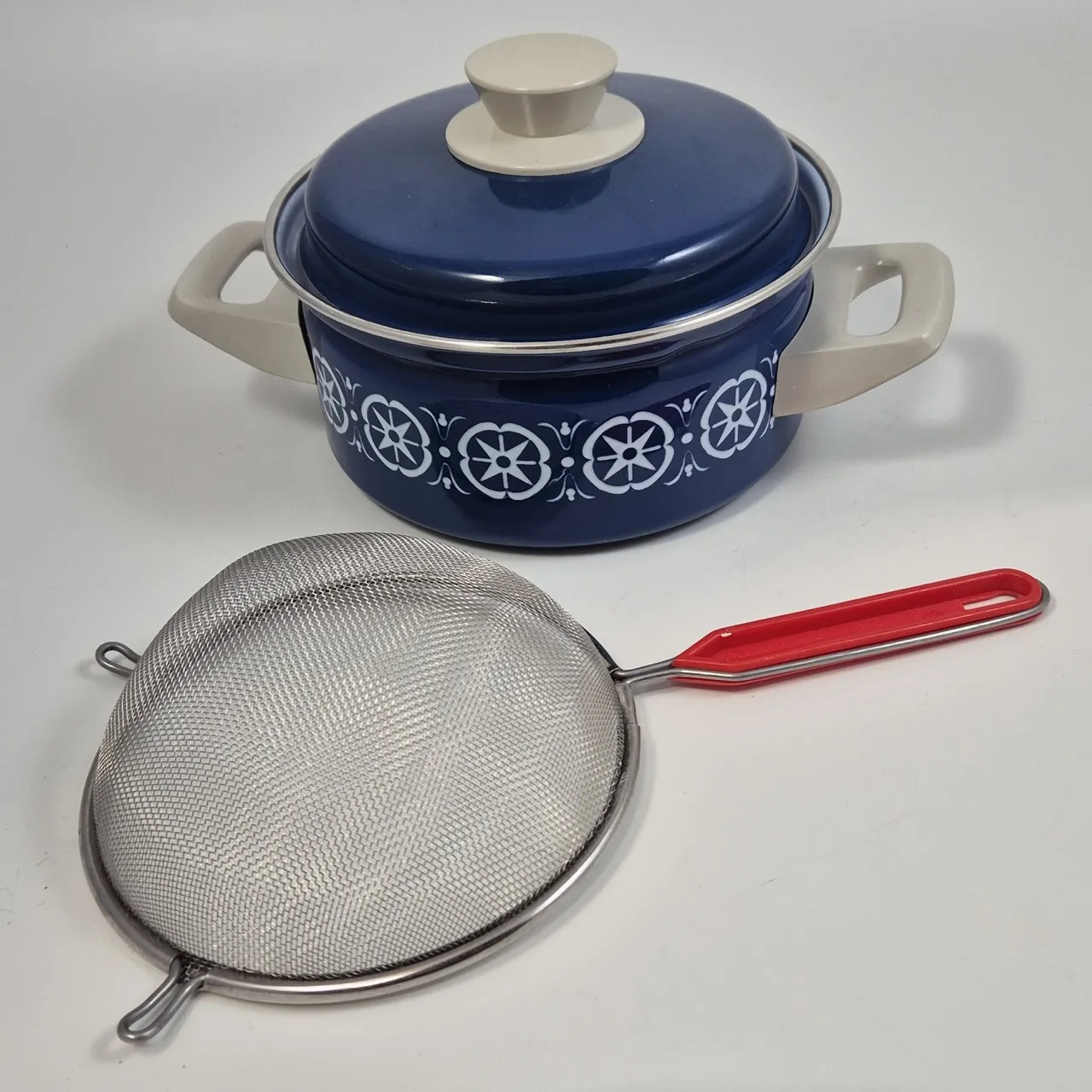 Emaljerad gryta (handtaget saknat en skruv) fungerar på induktion D.17.5cm, sil