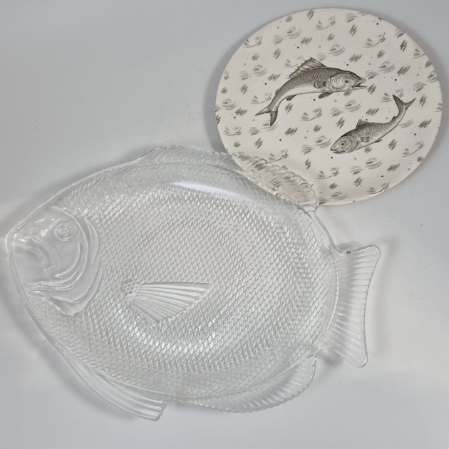 Stort fiskfat i glas 38x27cm