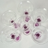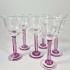 Vinglas med fågel i handtaget. Munblåsta. Därav är de lite olika och lite olika höjd