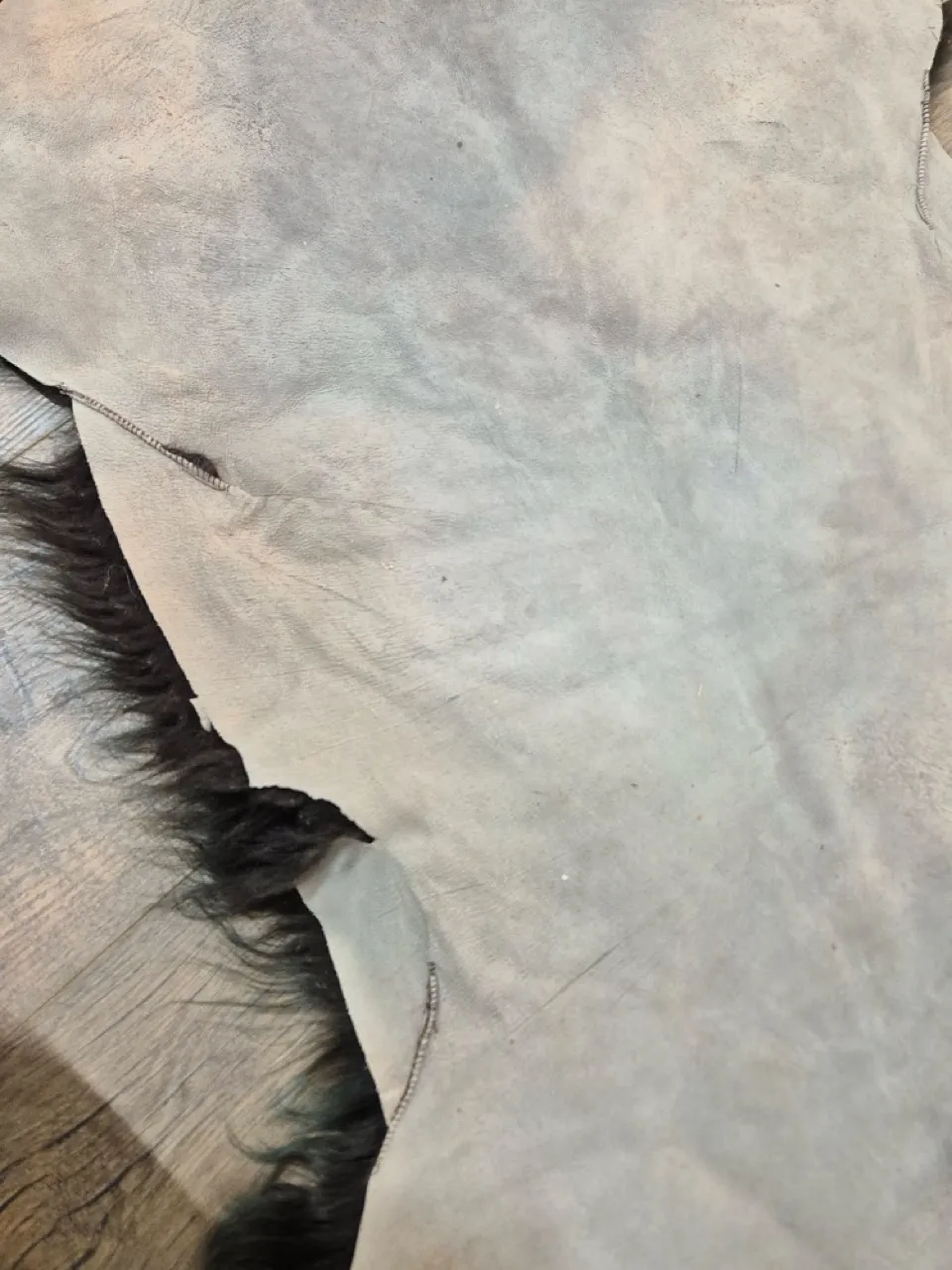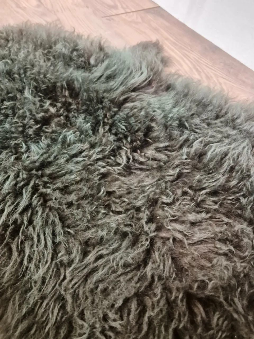 Brun/grönt fluffigt fårskinn ca 1meter
