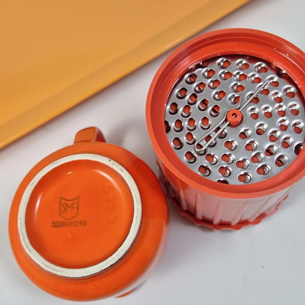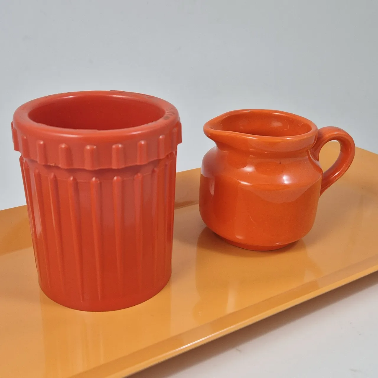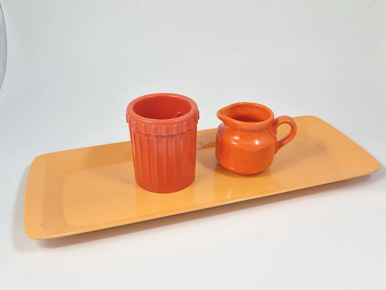 Bricka Fiskars L.43cm , Rivburk, gräddkanna i porslin