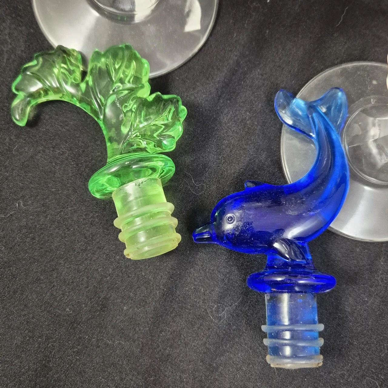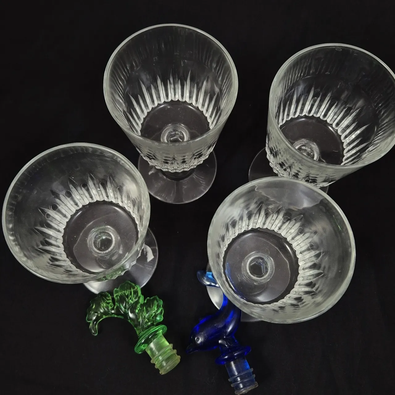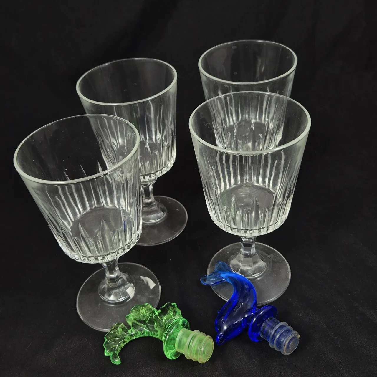 4st glas på fot H.15cm . 2st flaskkorkar i plast